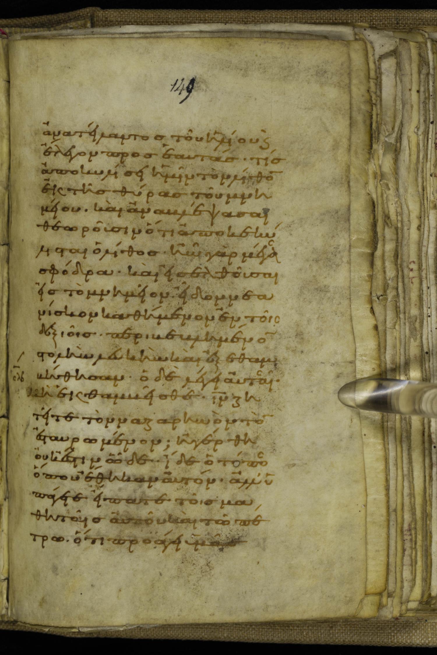Tenth century minuscule of the Gospels on parchment; 220 leaves, 1 column, 20-21 lines per column. Images were taken at the National Library of Greece in Athens.