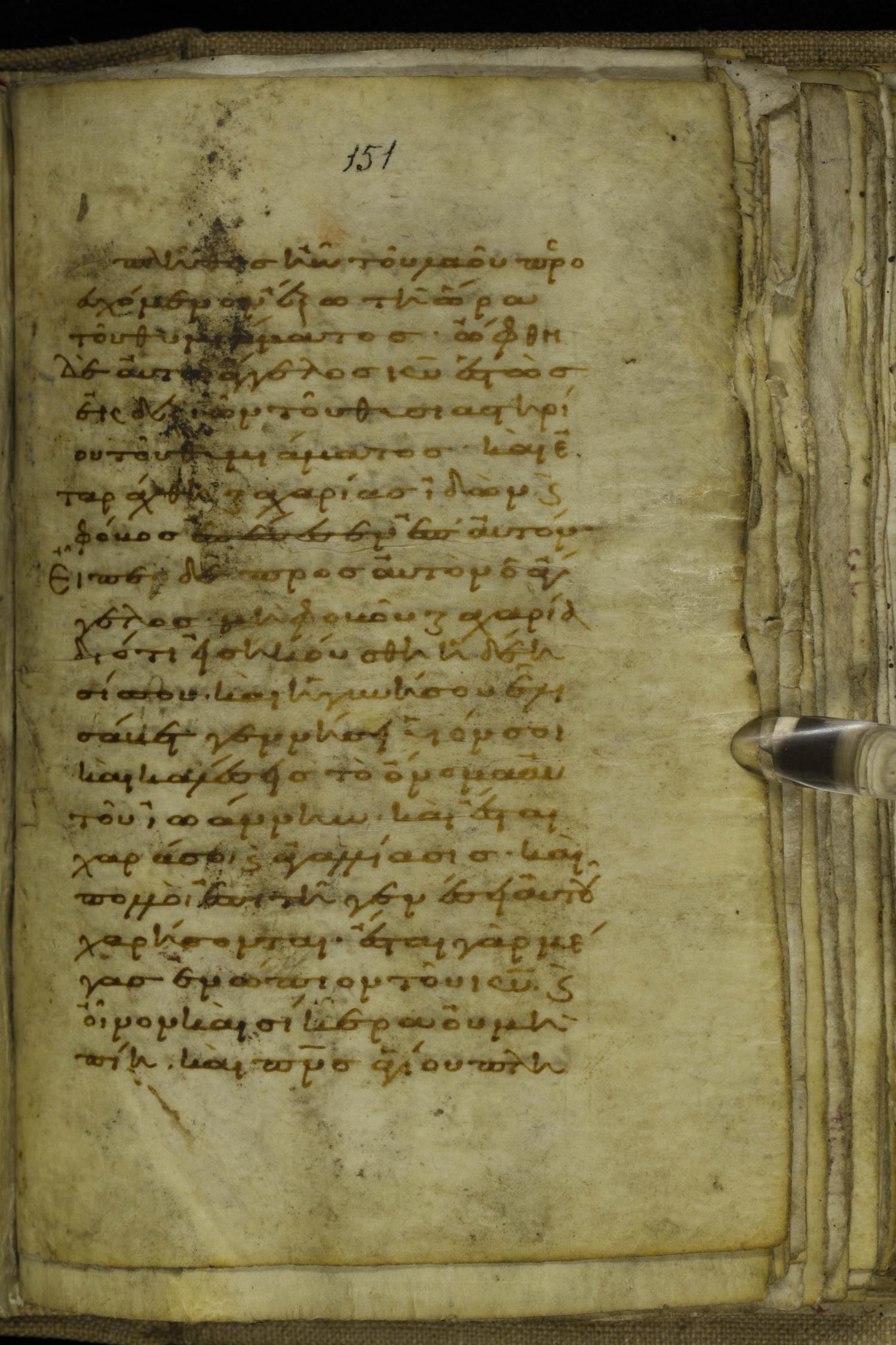 Tenth century minuscule of the Gospels on parchment; 220 leaves, 1 column, 20-21 lines per column. Images were taken at the National Library of Greece in Athens.