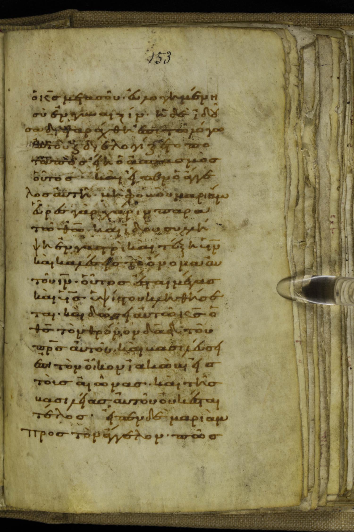 Tenth century minuscule of the Gospels on parchment; 220 leaves, 1 column, 20-21 lines per column. Images were taken at the National Library of Greece in Athens.