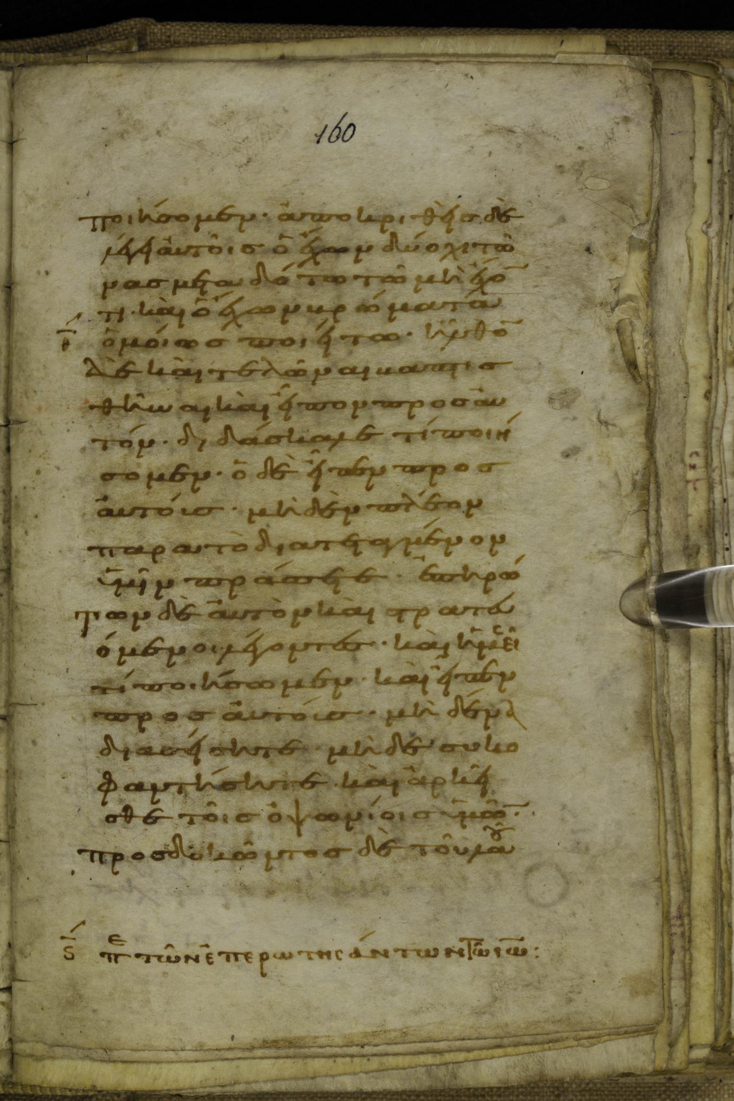 Tenth century minuscule of the Gospels on parchment; 220 leaves, 1 column, 20-21 lines per column. Images were taken at the National Library of Greece in Athens.