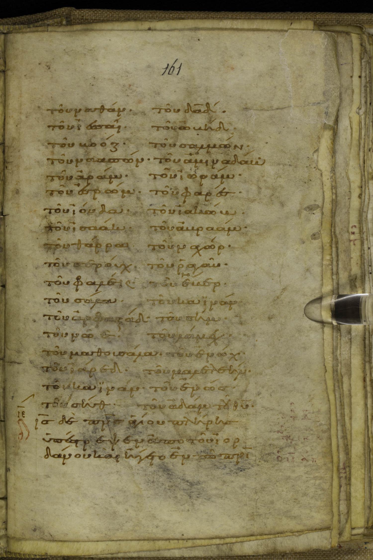Tenth century minuscule of the Gospels on parchment; 220 leaves, 1 column, 20-21 lines per column. Images were taken at the National Library of Greece in Athens.