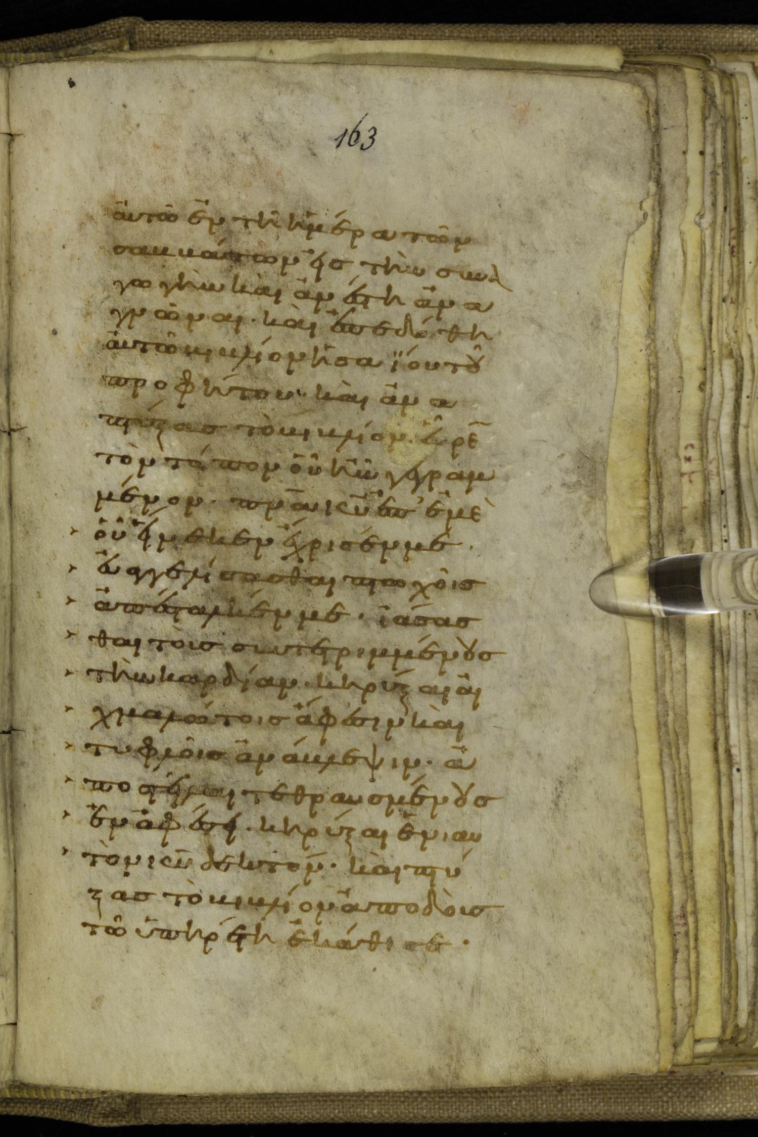 Tenth century minuscule of the Gospels on parchment; 220 leaves, 1 column, 20-21 lines per column. Images were taken at the National Library of Greece in Athens.