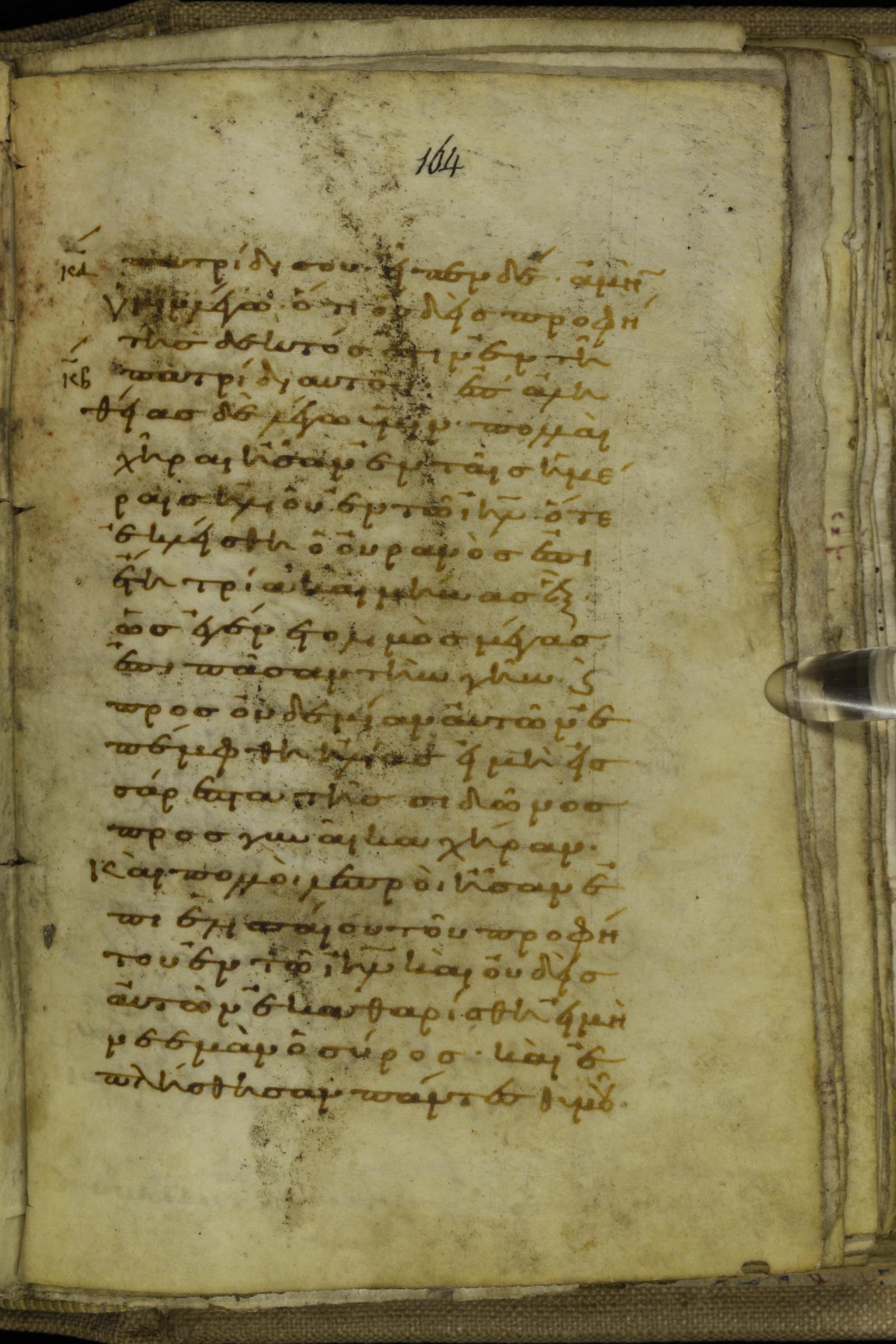 Tenth century minuscule of the Gospels on parchment; 220 leaves, 1 column, 20-21 lines per column. Images were taken at the National Library of Greece in Athens.