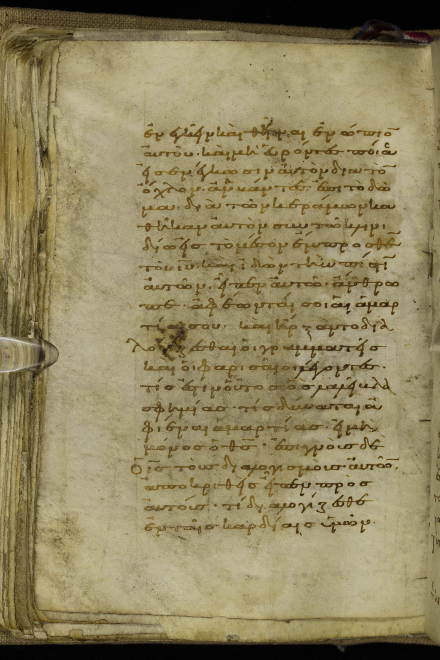 Tenth century minuscule of the Gospels on parchment; 220 leaves, 1 column, 20-21 lines per column. Images were taken at the National Library of Greece in Athens.