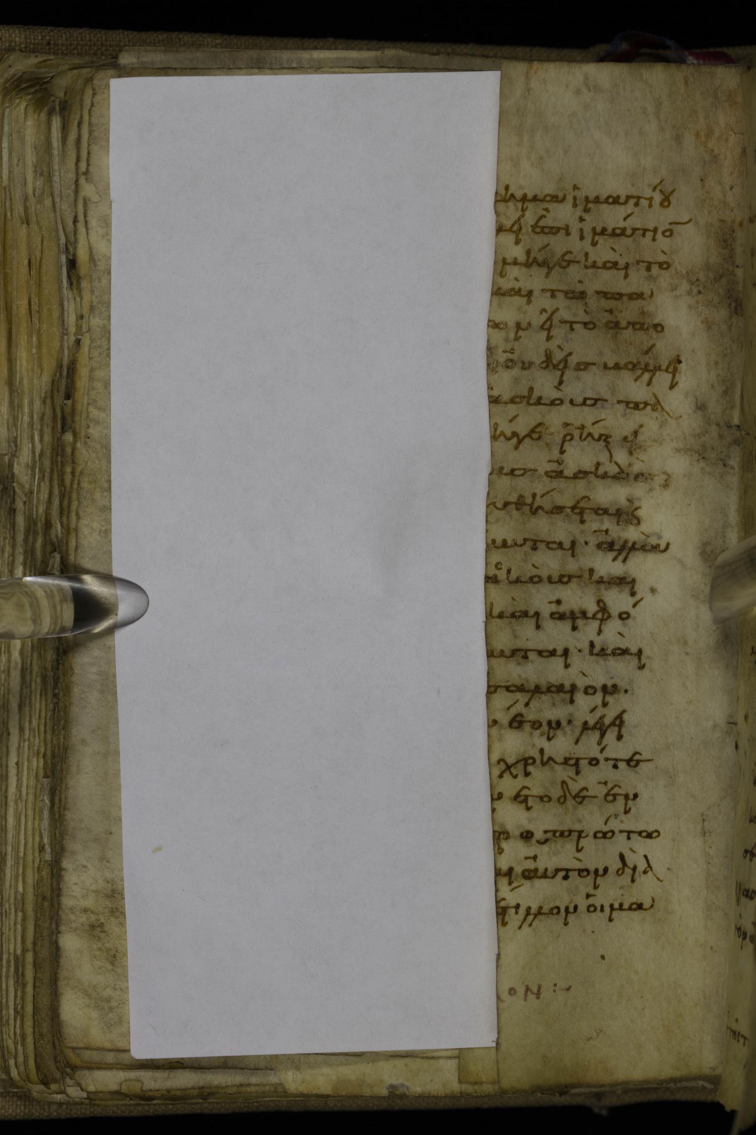 Tenth century minuscule of the Gospels on parchment; 220 leaves, 1 column, 20-21 lines per column. Images were taken at the National Library of Greece in Athens.