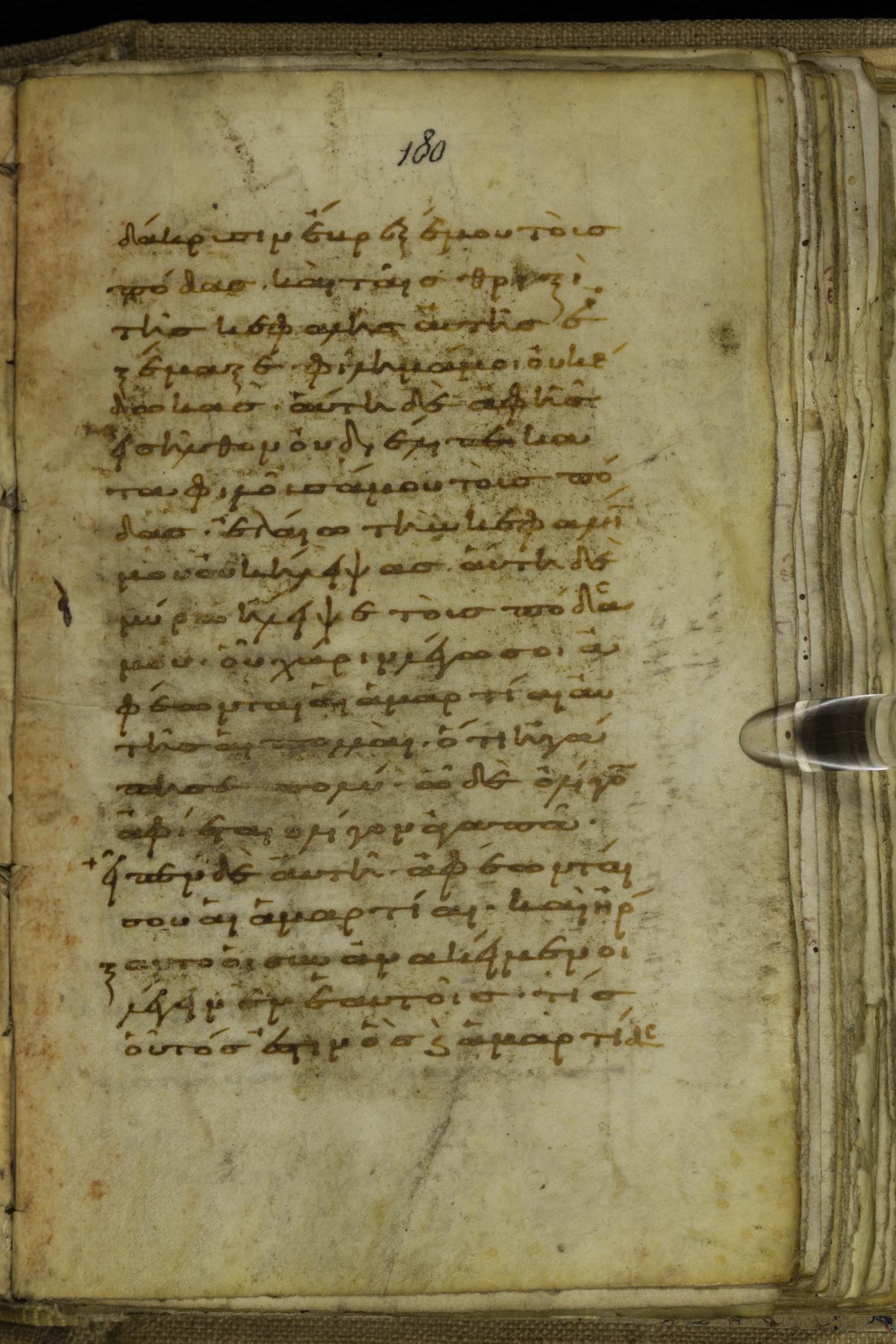Tenth century minuscule of the Gospels on parchment; 220 leaves, 1 column, 20-21 lines per column. Images were taken at the National Library of Greece in Athens.