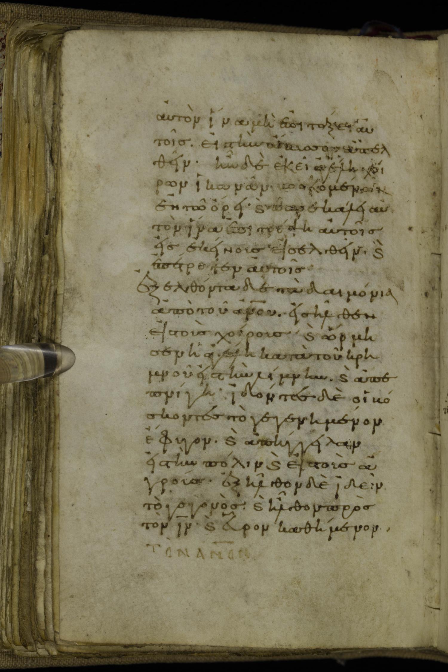 Tenth century minuscule of the Gospels on parchment; 220 leaves, 1 column, 20-21 lines per column. Images were taken at the National Library of Greece in Athens.