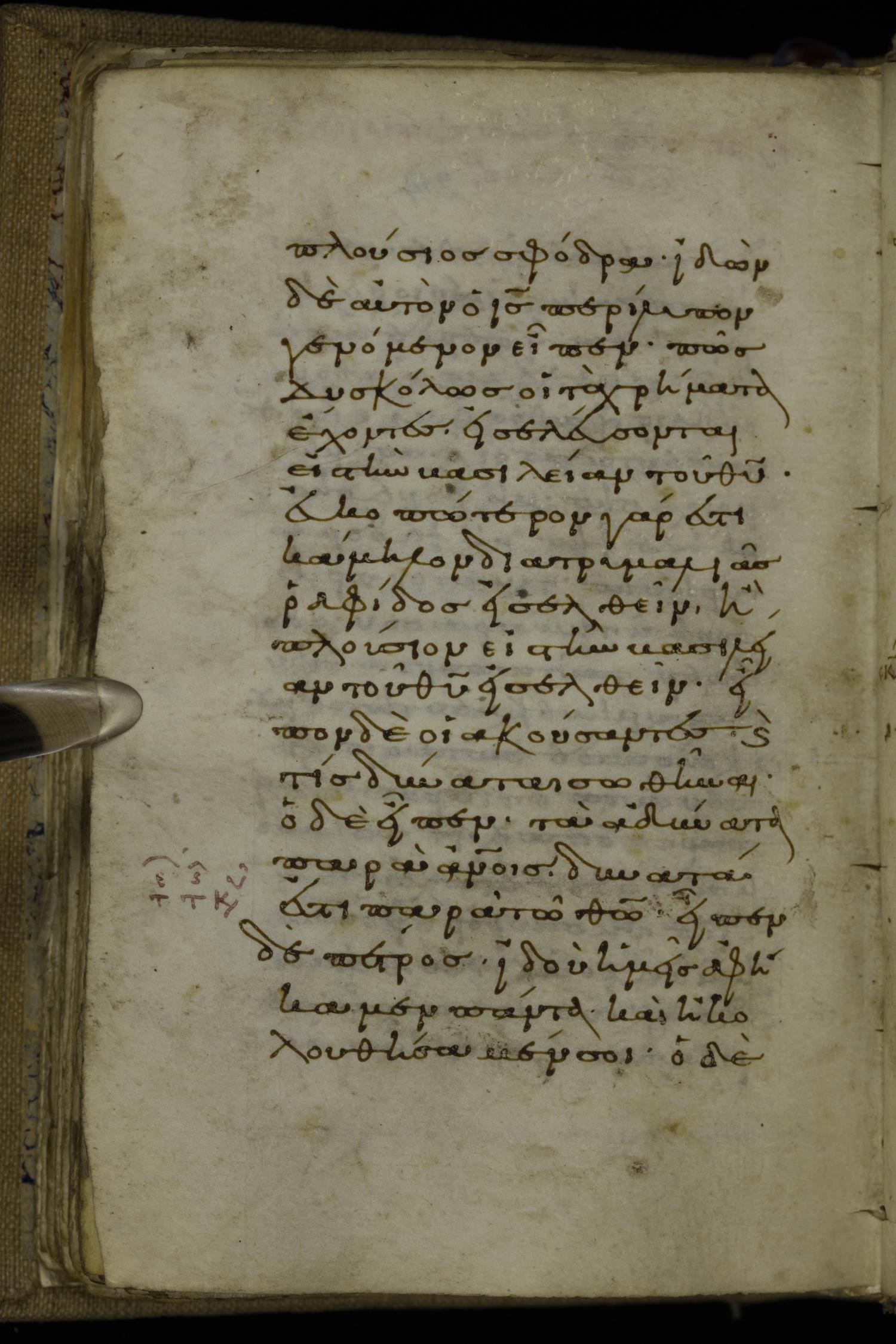 Tenth century minuscule of the Gospels on parchment; 220 leaves, 1 column, 20-21 lines per column. Images were taken at the National Library of Greece in Athens.
