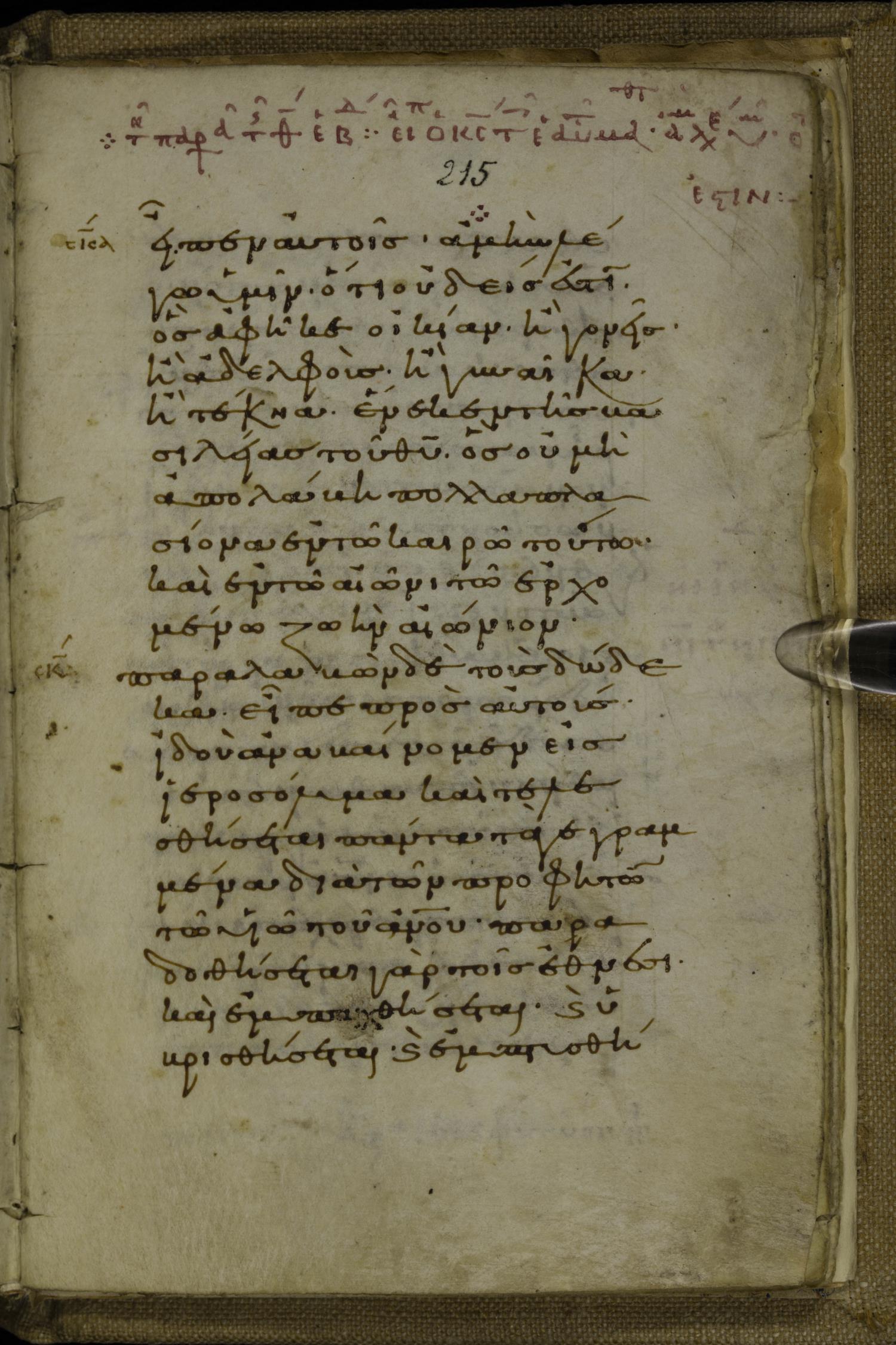 Tenth century minuscule of the Gospels on parchment; 220 leaves, 1 column, 20-21 lines per column. Images were taken at the National Library of Greece in Athens.