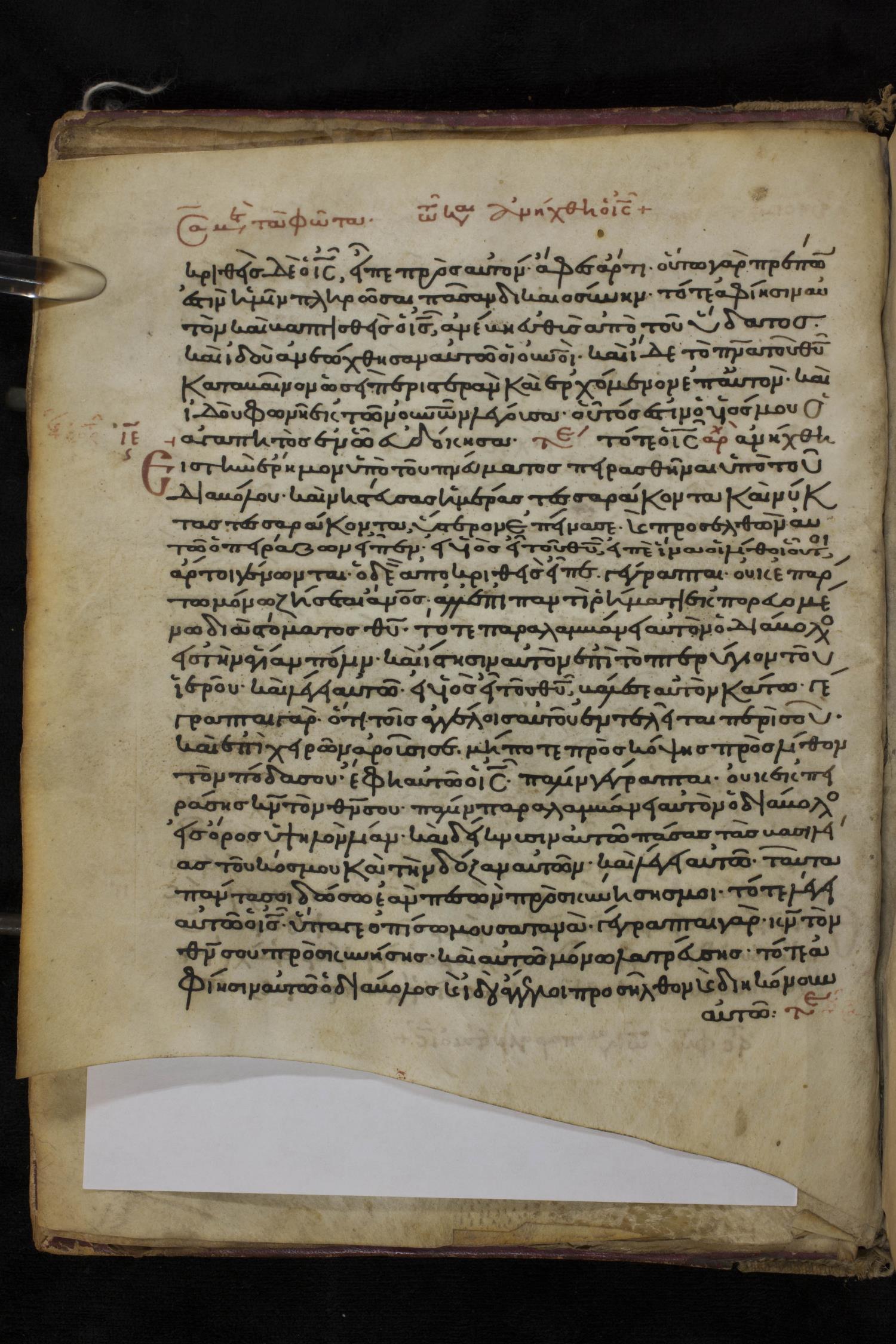 Twelfth century minuscule of the Gospels on parchment; 150 leaves, 1 column, 27 lines per column. Images were taken at the National Library of Greece in Athens.