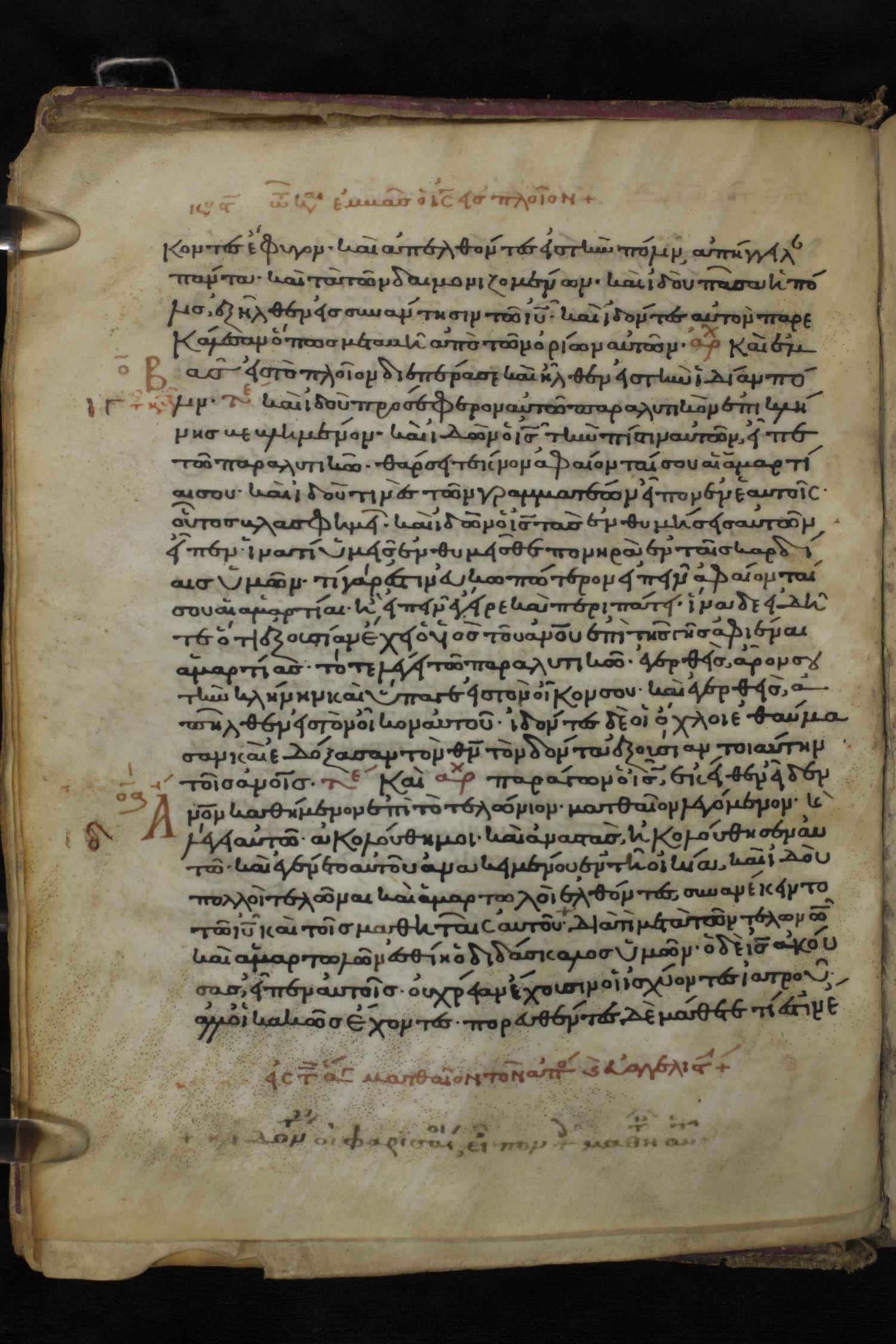 Twelfth century minuscule of the Gospels on parchment; 150 leaves, 1 column, 27 lines per column. Images were taken at the National Library of Greece in Athens.
