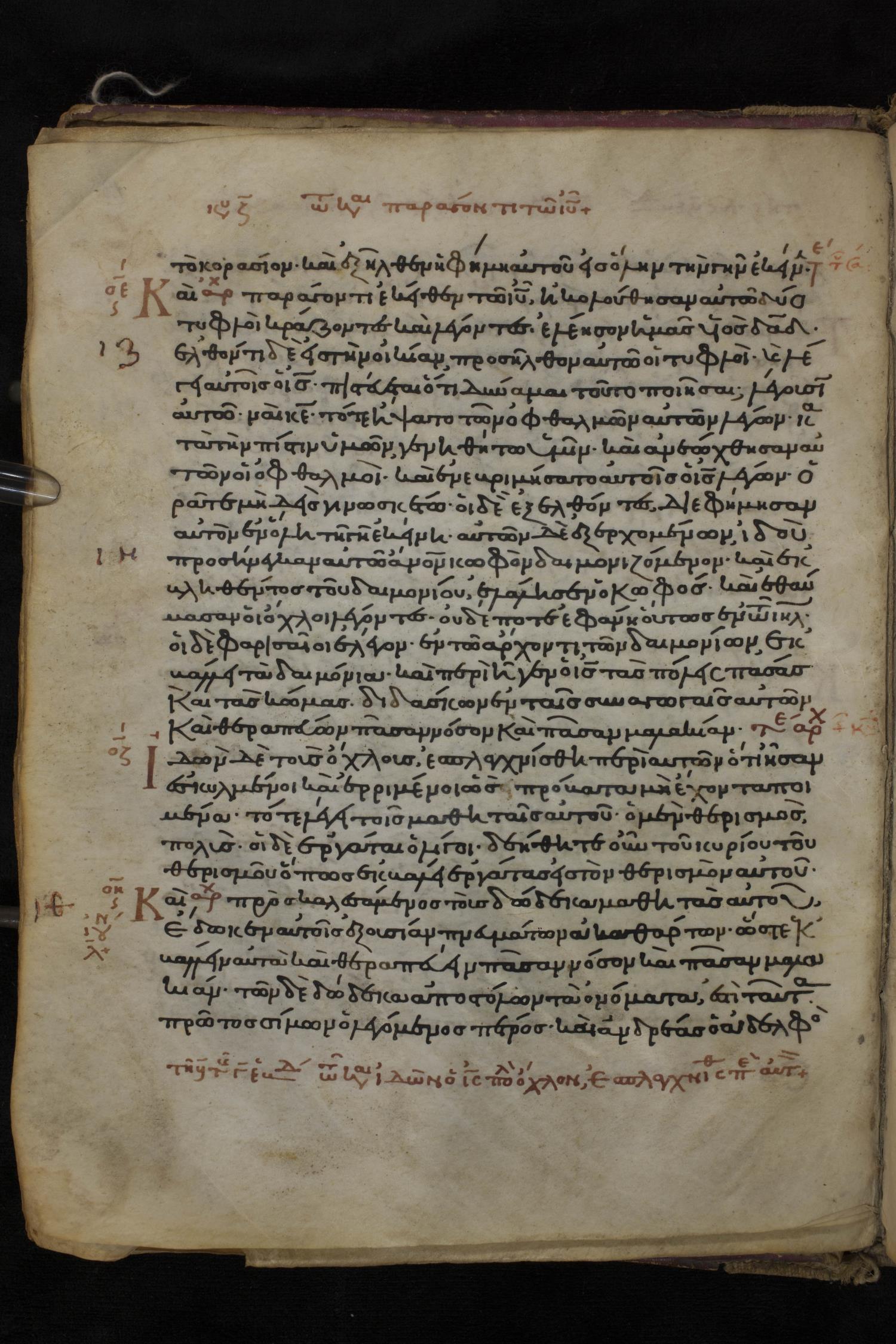 Twelfth century minuscule of the Gospels on parchment; 150 leaves, 1 column, 27 lines per column. Images were taken at the National Library of Greece in Athens.