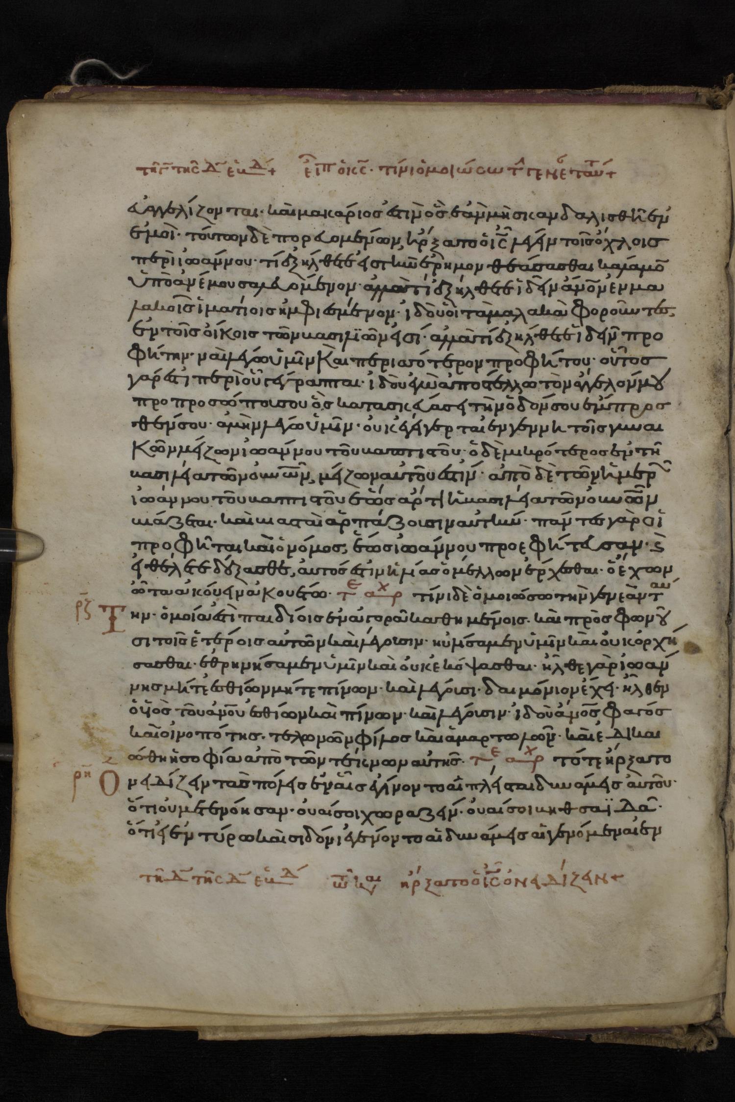 Twelfth century minuscule of the Gospels on parchment; 150 leaves, 1 column, 27 lines per column. Images were taken at the National Library of Greece in Athens.