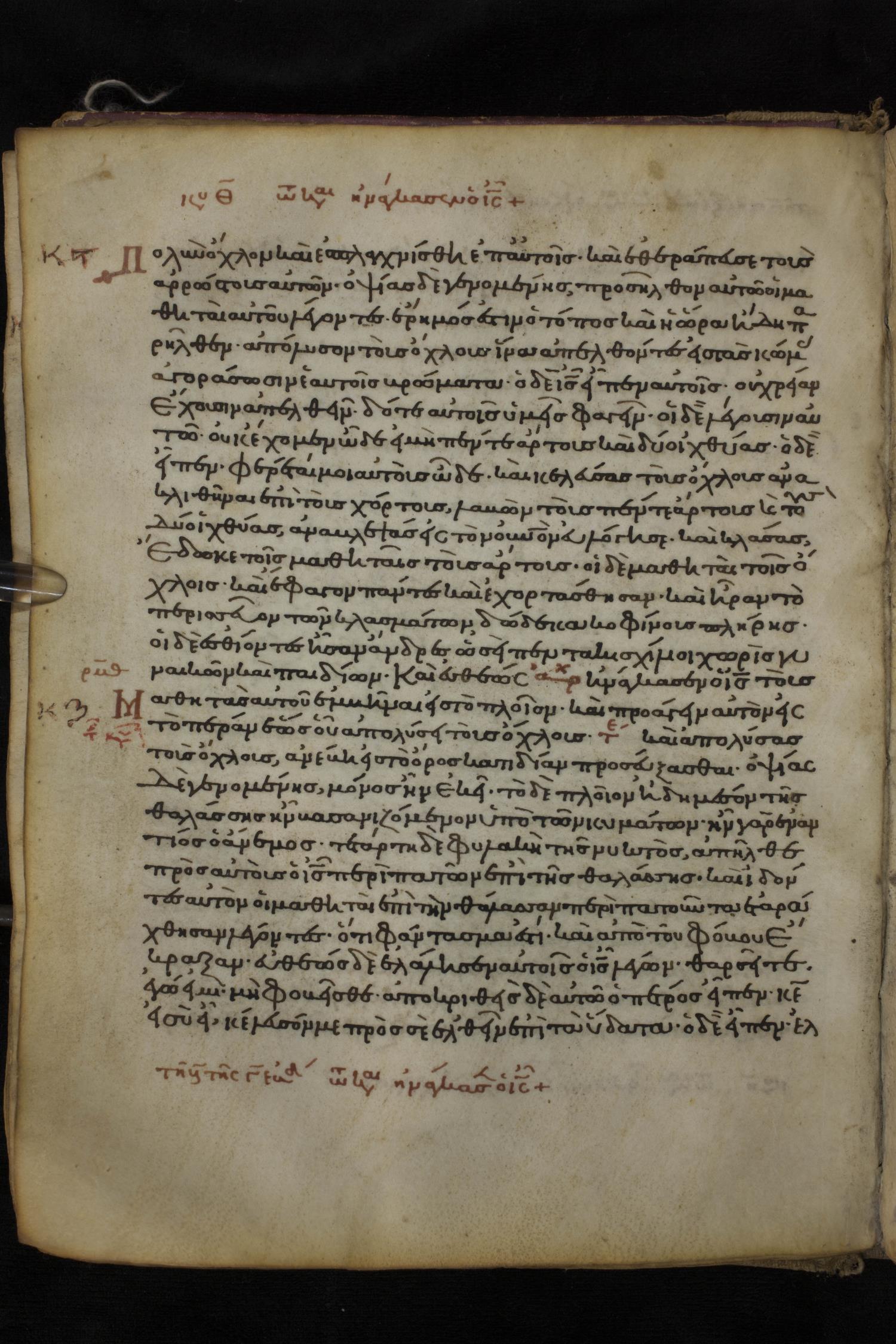 Twelfth century minuscule of the Gospels on parchment; 150 leaves, 1 column, 27 lines per column. Images were taken at the National Library of Greece in Athens.