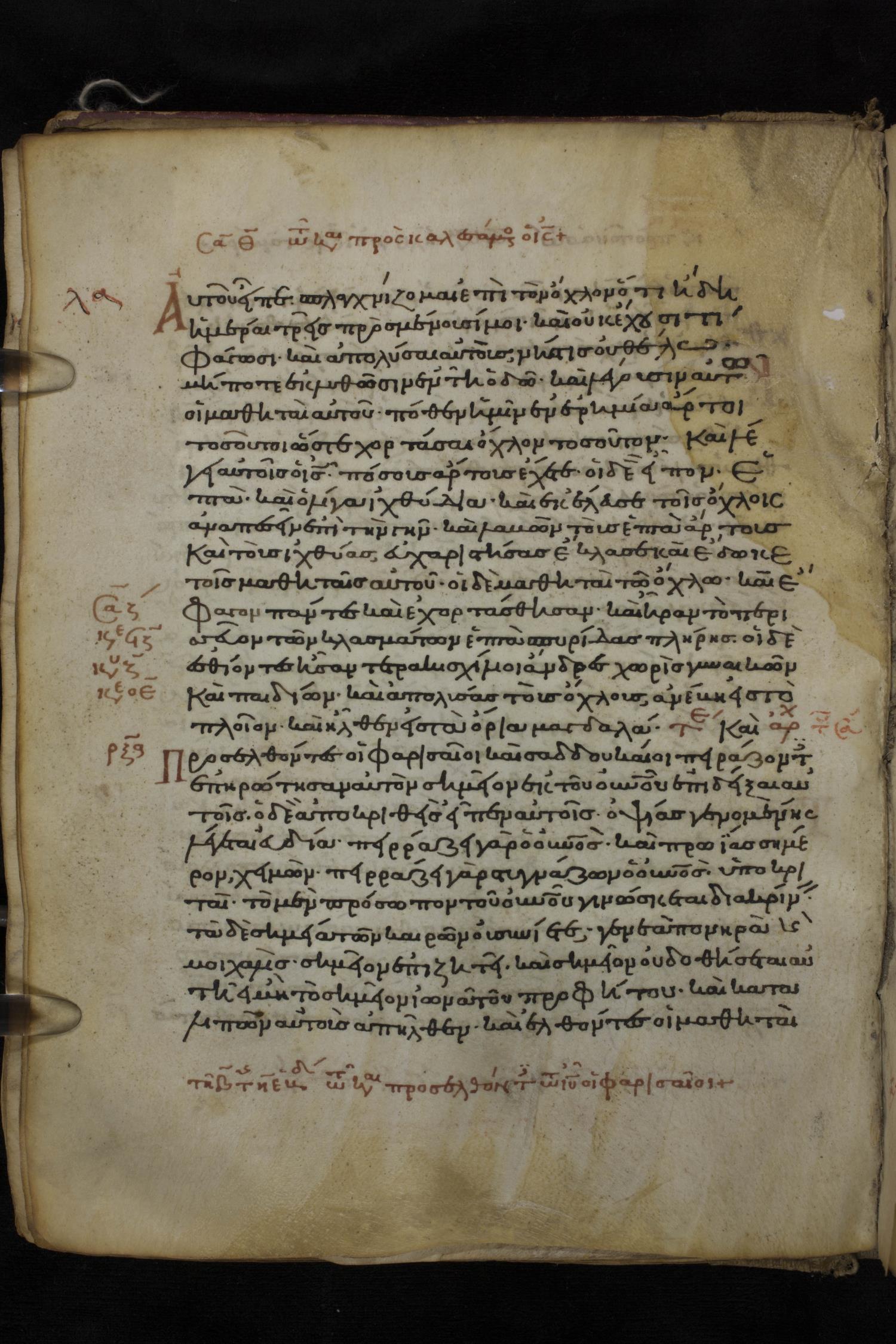 Twelfth century minuscule of the Gospels on parchment; 150 leaves, 1 column, 27 lines per column. Images were taken at the National Library of Greece in Athens.