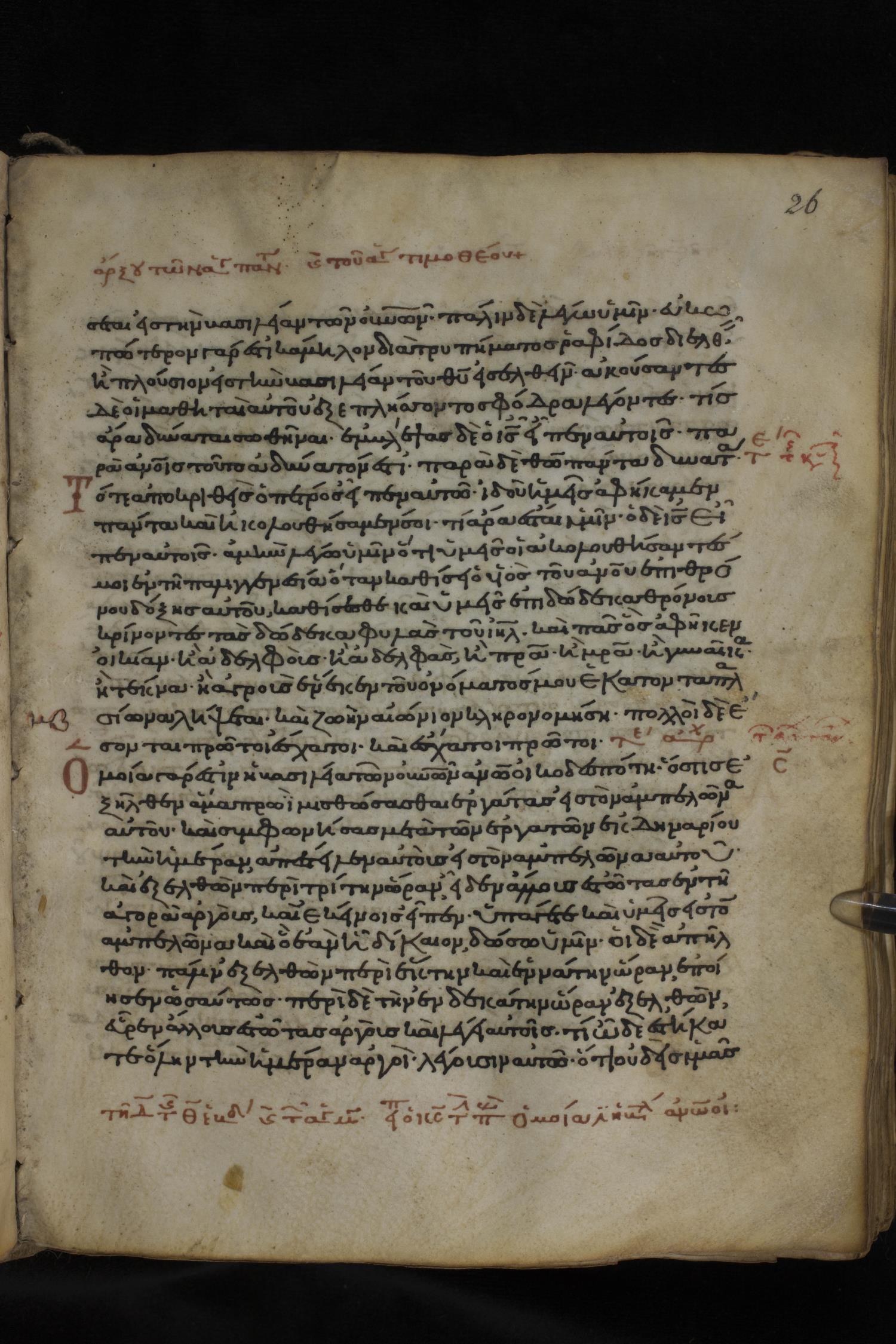 Twelfth century minuscule of the Gospels on parchment; 150 leaves, 1 column, 27 lines per column. Images were taken at the National Library of Greece in Athens.