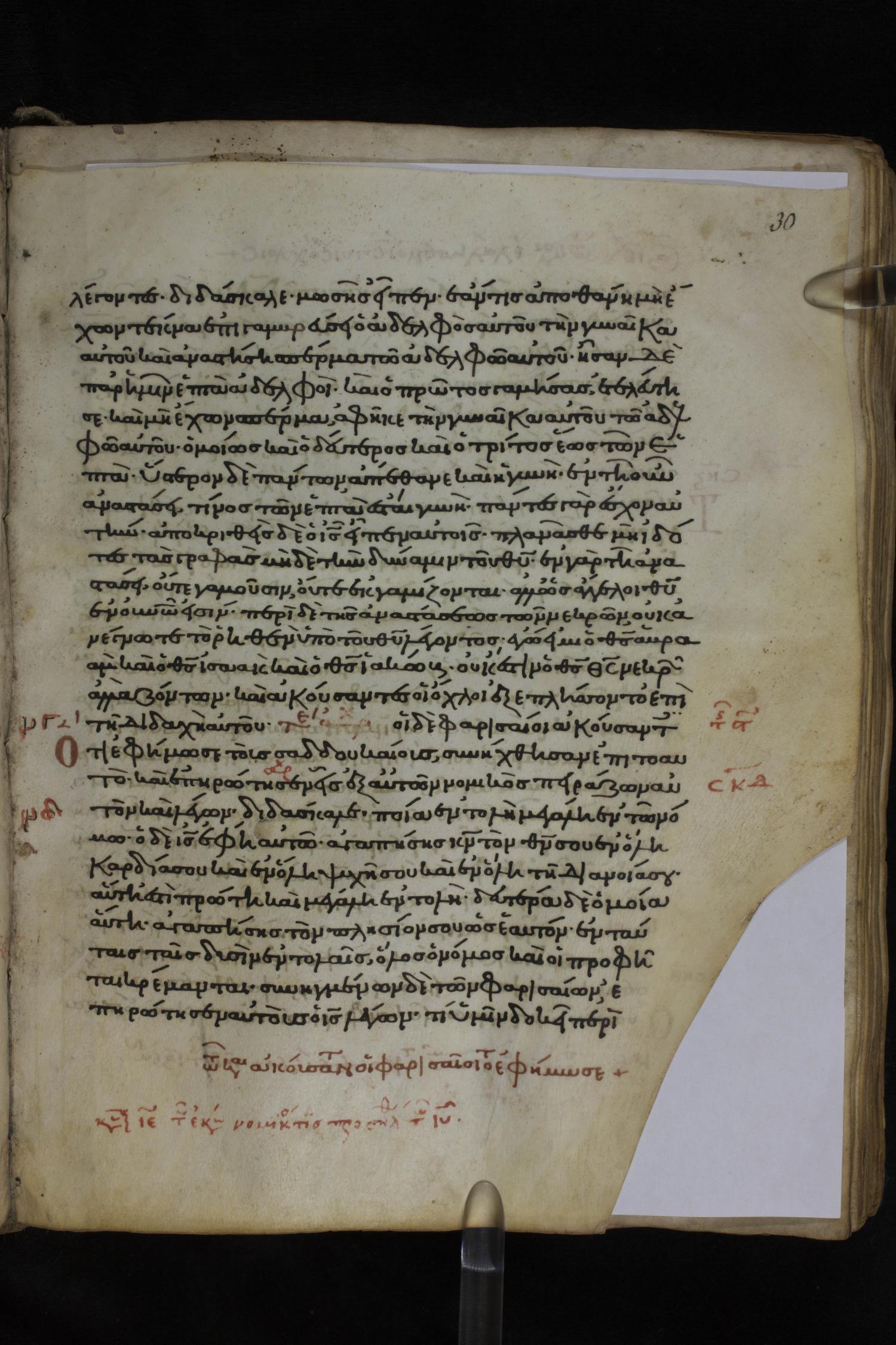 Twelfth century minuscule of the Gospels on parchment; 150 leaves, 1 column, 27 lines per column. Images were taken at the National Library of Greece in Athens.