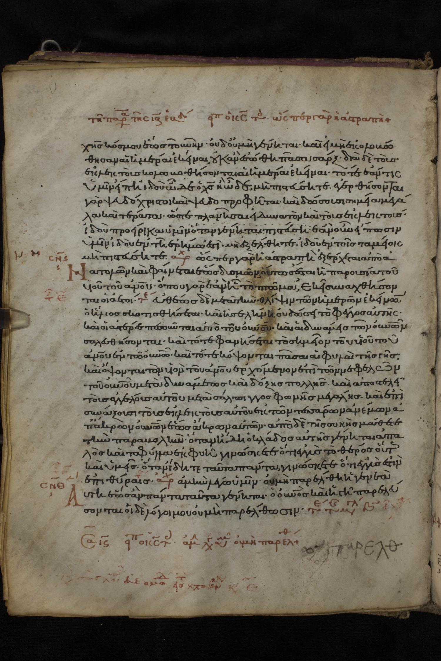 Twelfth century minuscule of the Gospels on parchment; 150 leaves, 1 column, 27 lines per column. Images were taken at the National Library of Greece in Athens.