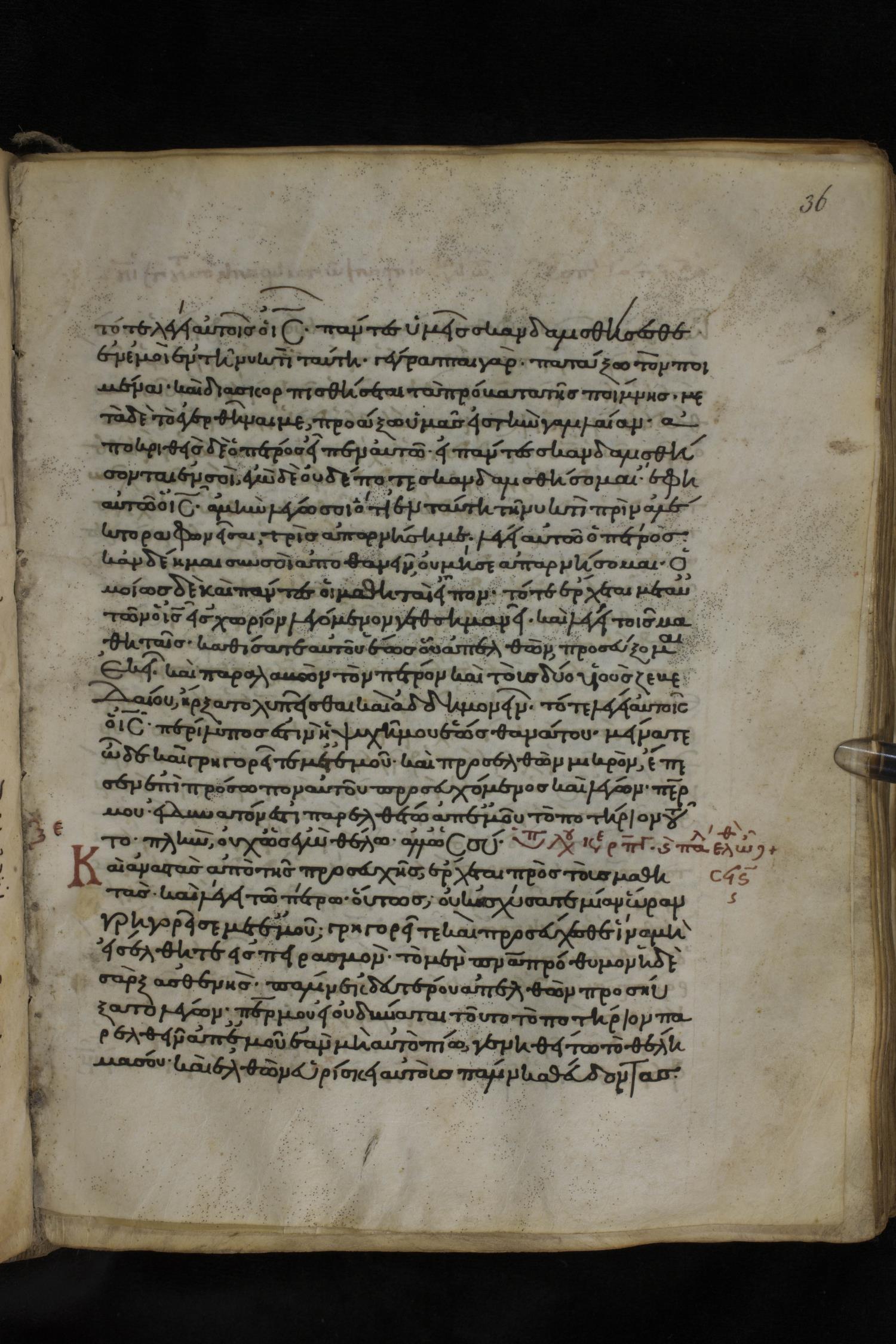 Twelfth century minuscule of the Gospels on parchment; 150 leaves, 1 column, 27 lines per column. Images were taken at the National Library of Greece in Athens.