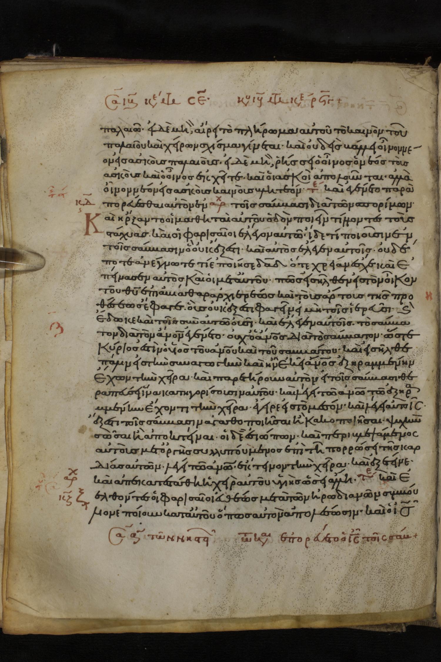 Twelfth century minuscule of the Gospels on parchment; 150 leaves, 1 column, 27 lines per column. Images were taken at the National Library of Greece in Athens.