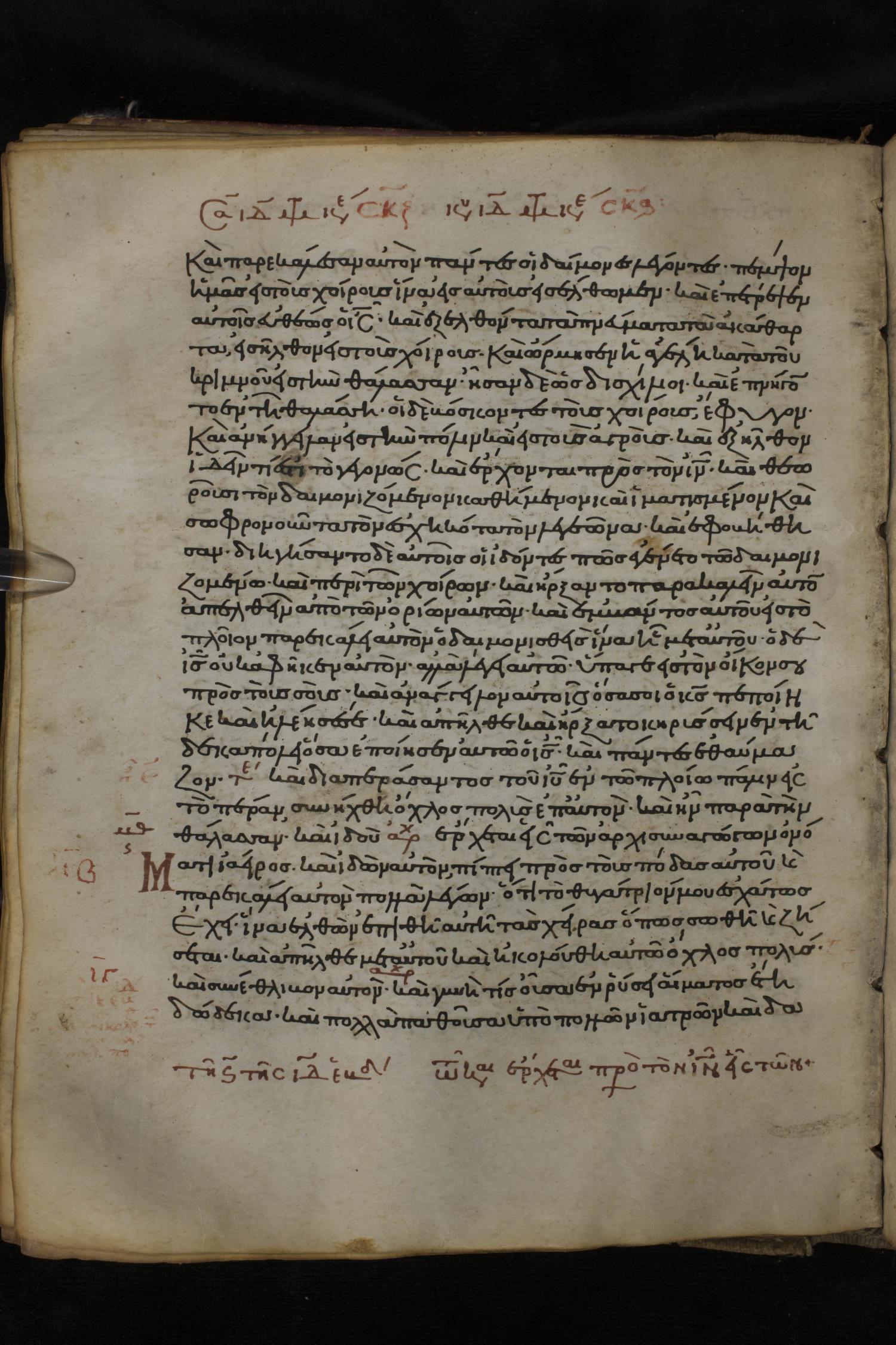 Twelfth century minuscule of the Gospels on parchment; 150 leaves, 1 column, 27 lines per column. Images were taken at the National Library of Greece in Athens.