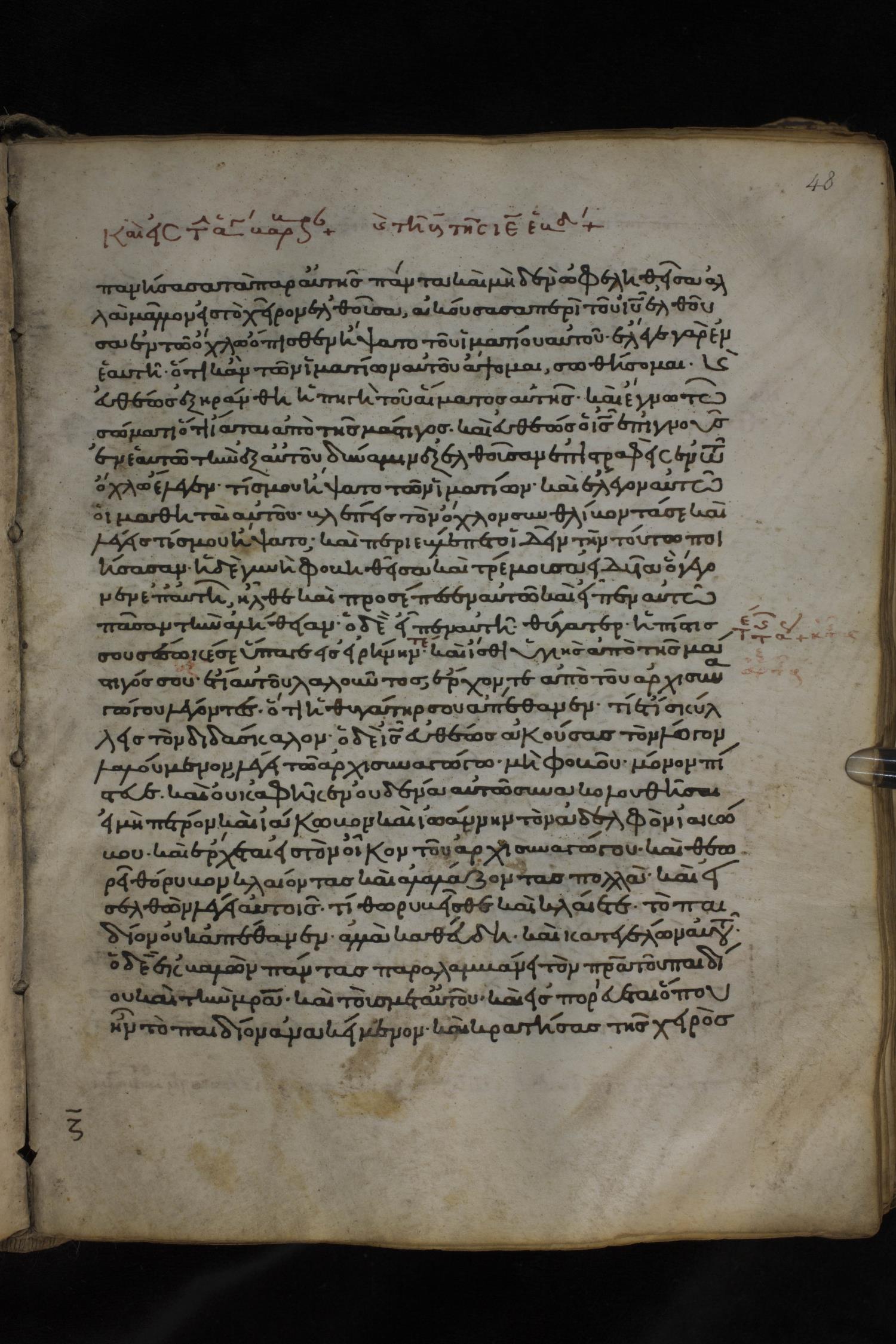 Twelfth century minuscule of the Gospels on parchment; 150 leaves, 1 column, 27 lines per column. Images were taken at the National Library of Greece in Athens.