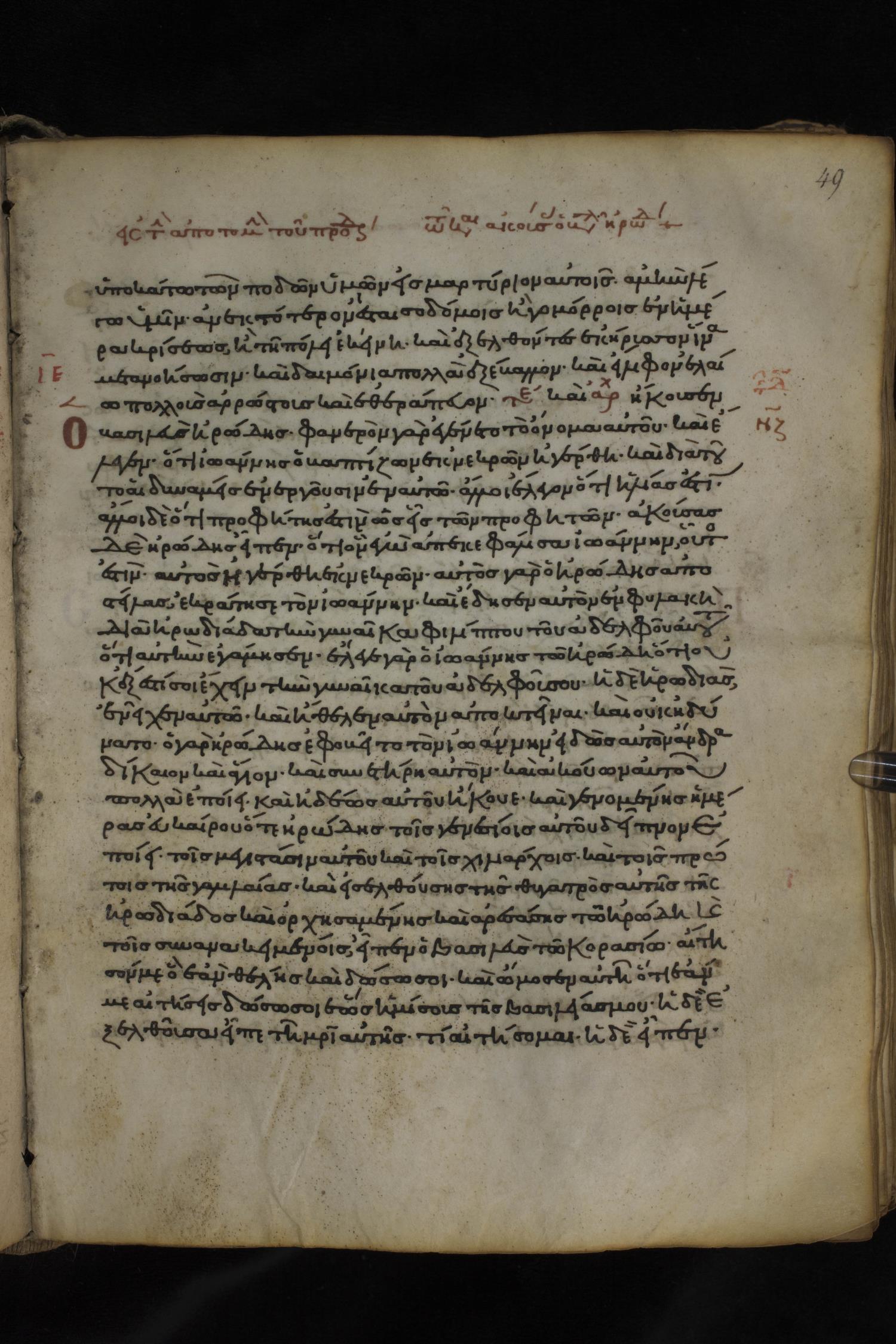 Twelfth century minuscule of the Gospels on parchment; 150 leaves, 1 column, 27 lines per column. Images were taken at the National Library of Greece in Athens.