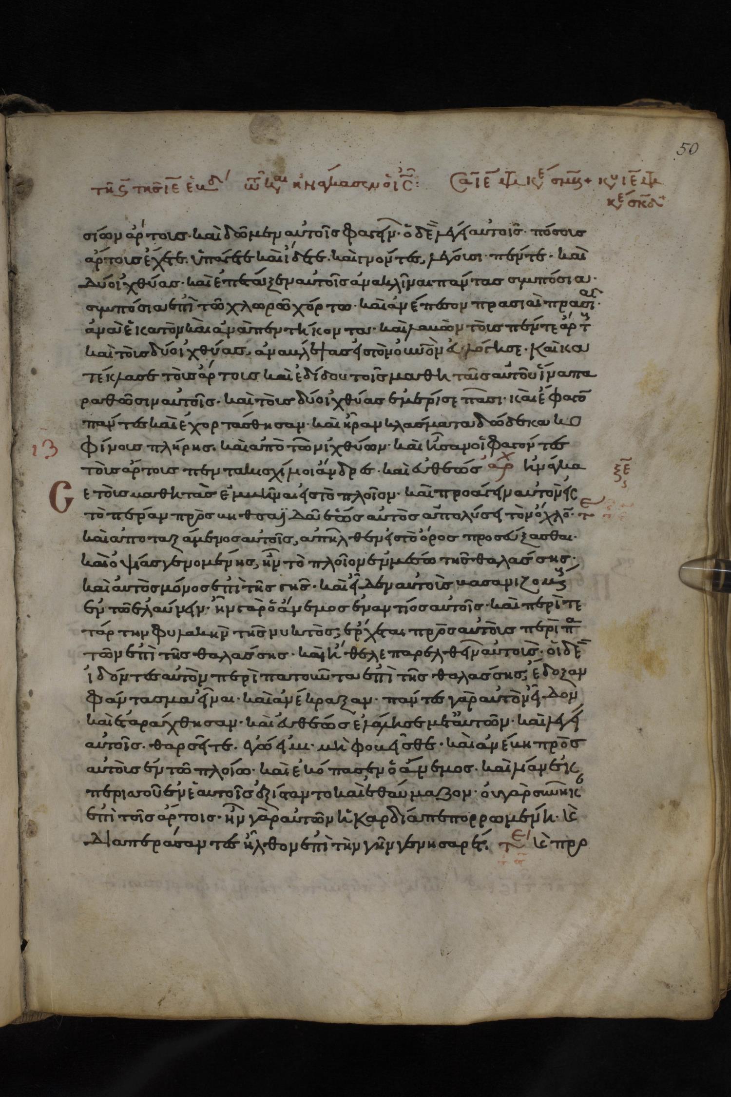 Twelfth century minuscule of the Gospels on parchment; 150 leaves, 1 column, 27 lines per column. Images were taken at the National Library of Greece in Athens.