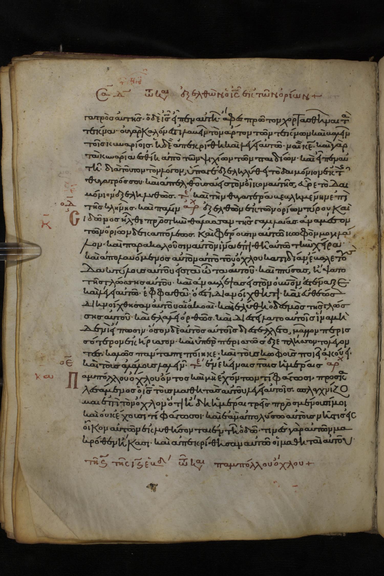 Twelfth century minuscule of the Gospels on parchment; 150 leaves, 1 column, 27 lines per column. Images were taken at the National Library of Greece in Athens.