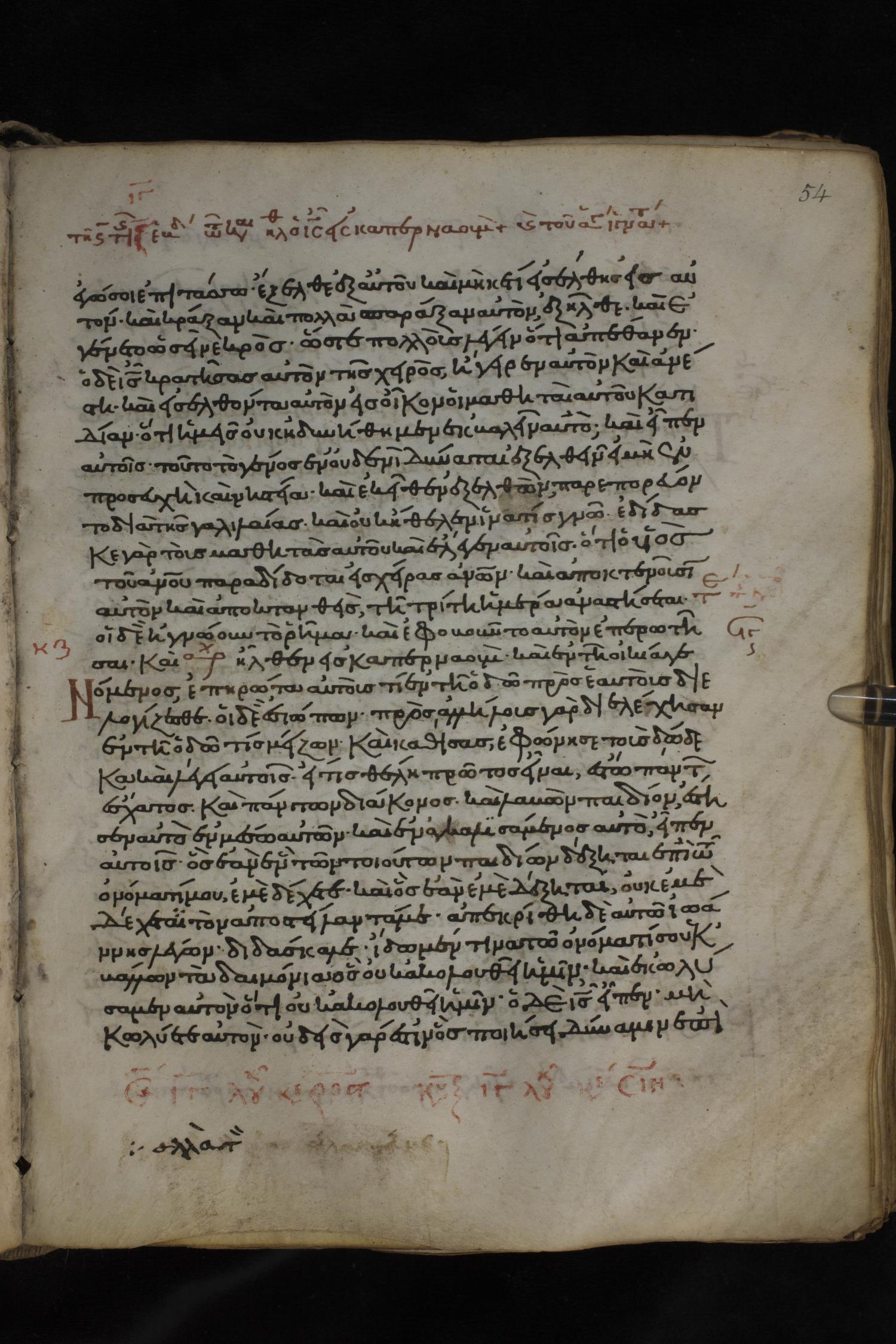 Twelfth century minuscule of the Gospels on parchment; 150 leaves, 1 column, 27 lines per column. Images were taken at the National Library of Greece in Athens.