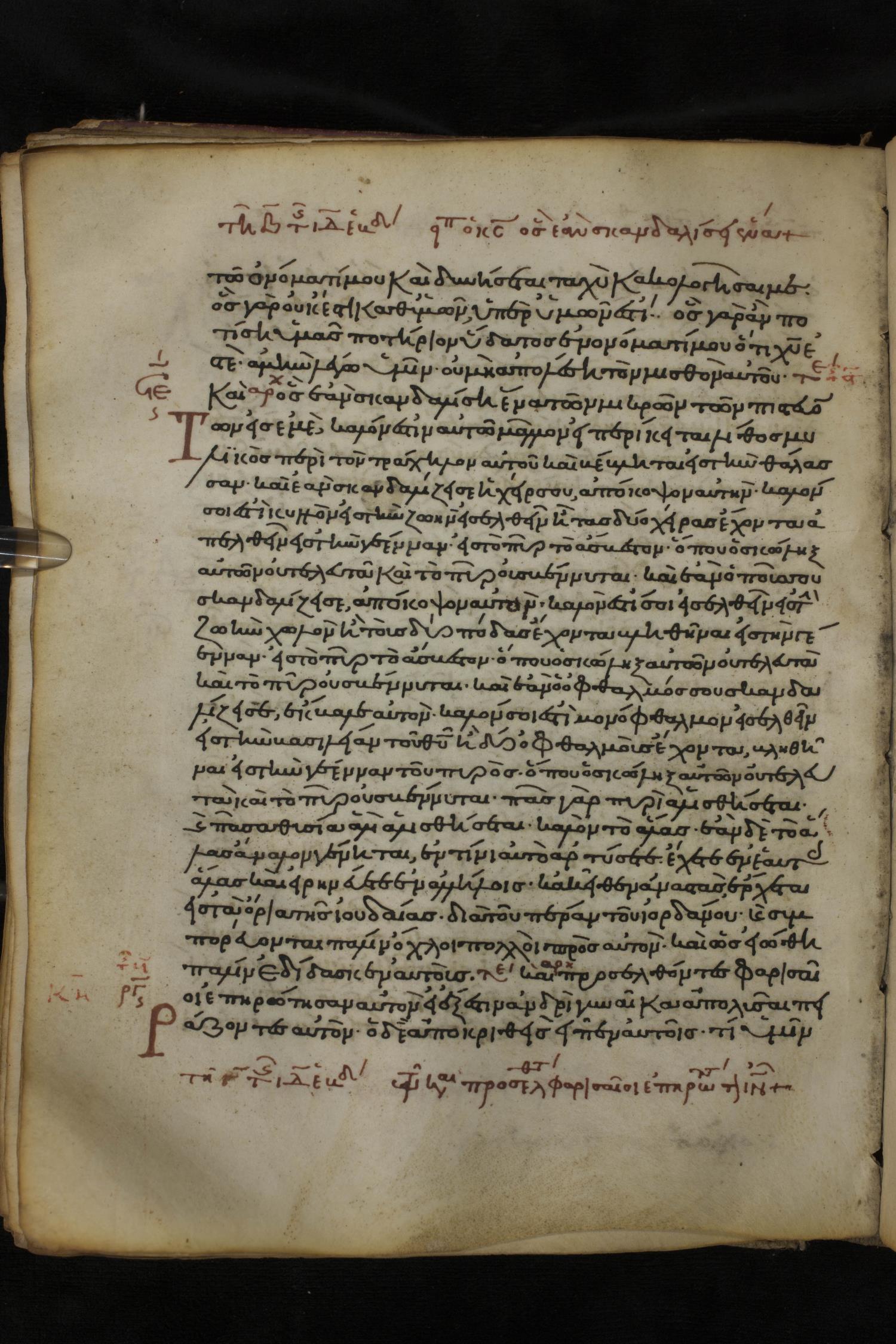 Twelfth century minuscule of the Gospels on parchment; 150 leaves, 1 column, 27 lines per column. Images were taken at the National Library of Greece in Athens.