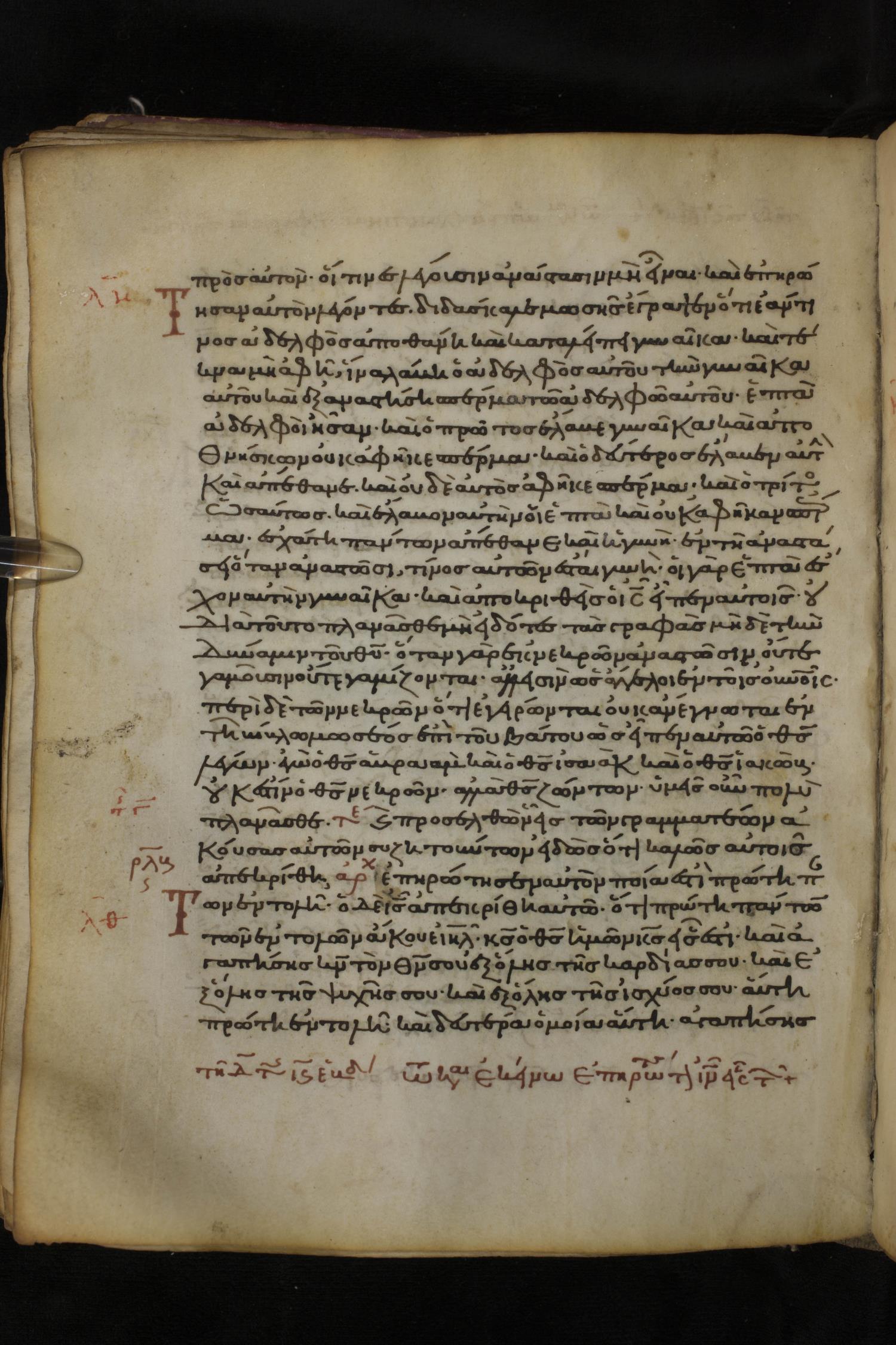 Twelfth century minuscule of the Gospels on parchment; 150 leaves, 1 column, 27 lines per column. Images were taken at the National Library of Greece in Athens.