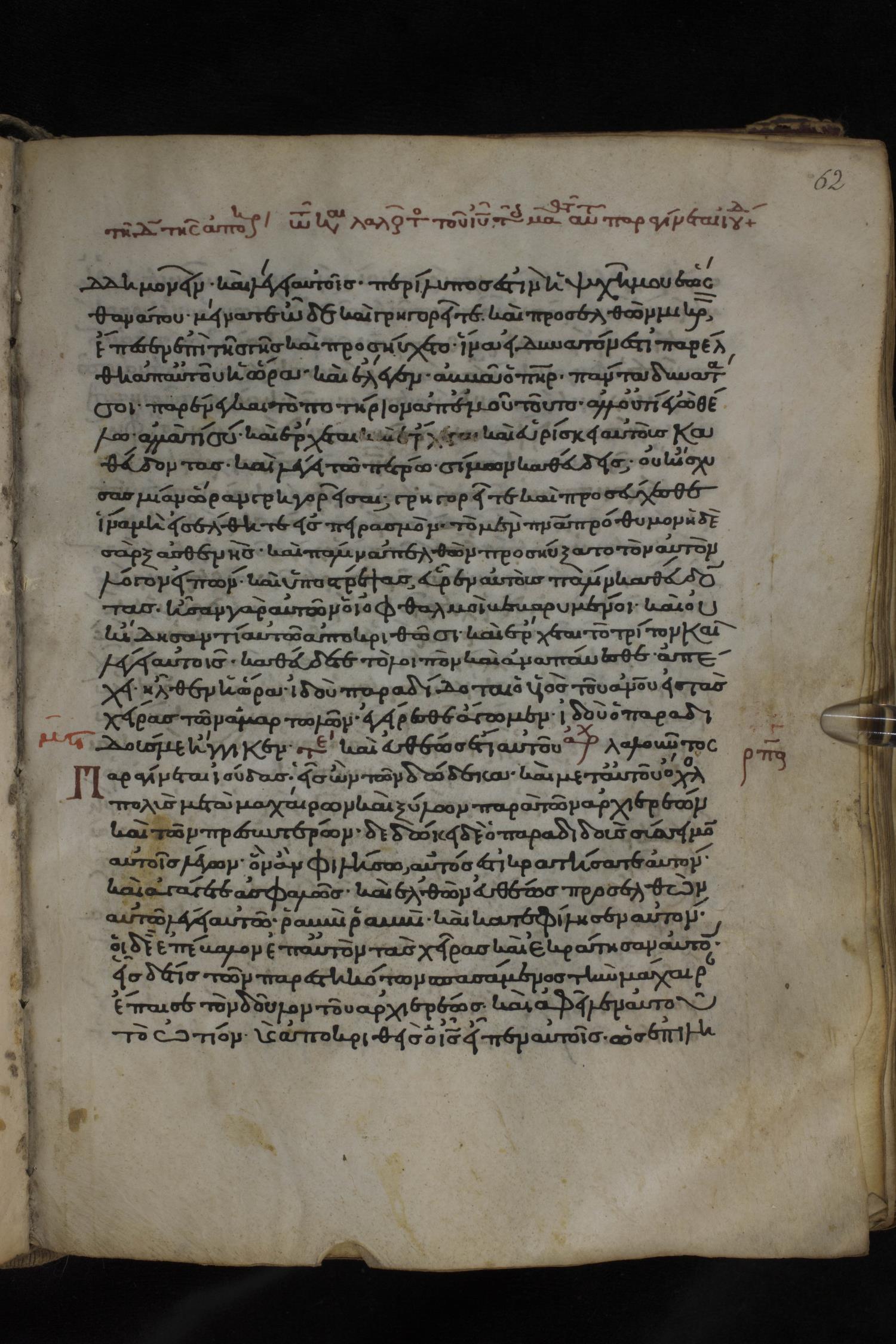 Twelfth century minuscule of the Gospels on parchment; 150 leaves, 1 column, 27 lines per column. Images were taken at the National Library of Greece in Athens.