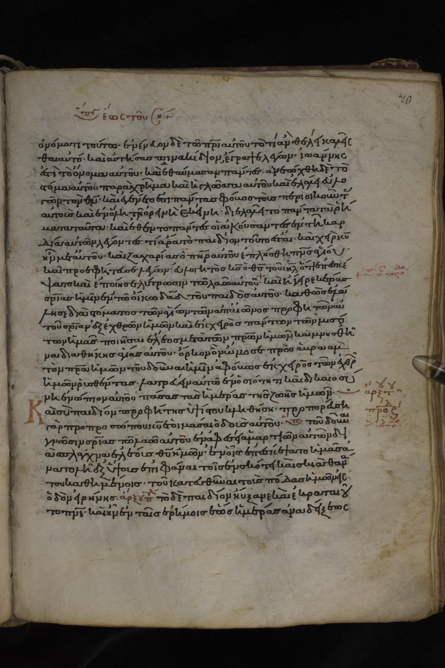 Twelfth century minuscule of the Gospels on parchment; 150 leaves, 1 column, 27 lines per column. Images were taken at the National Library of Greece in Athens.