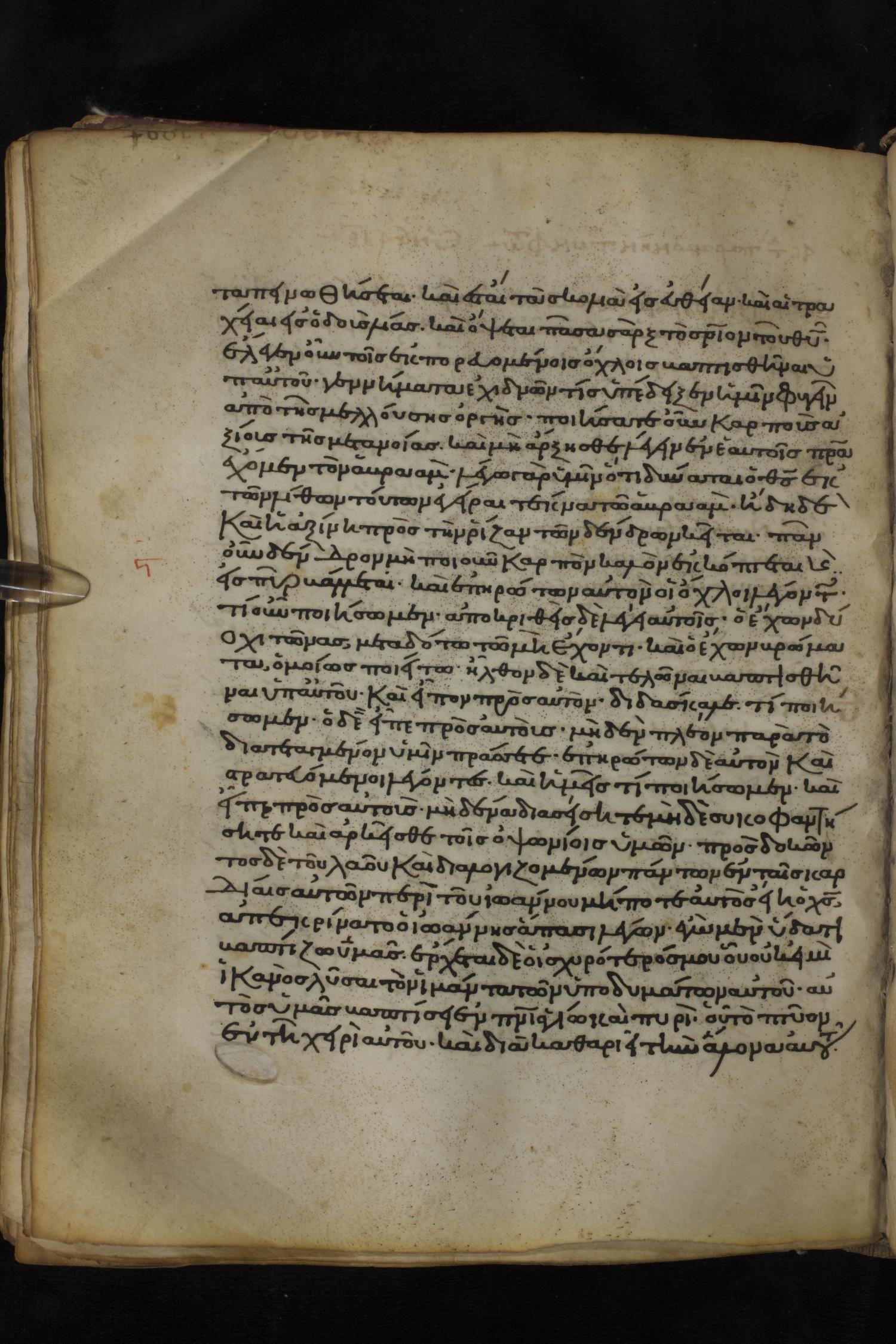 Twelfth century minuscule of the Gospels on parchment; 150 leaves, 1 column, 27 lines per column. Images were taken at the National Library of Greece in Athens.