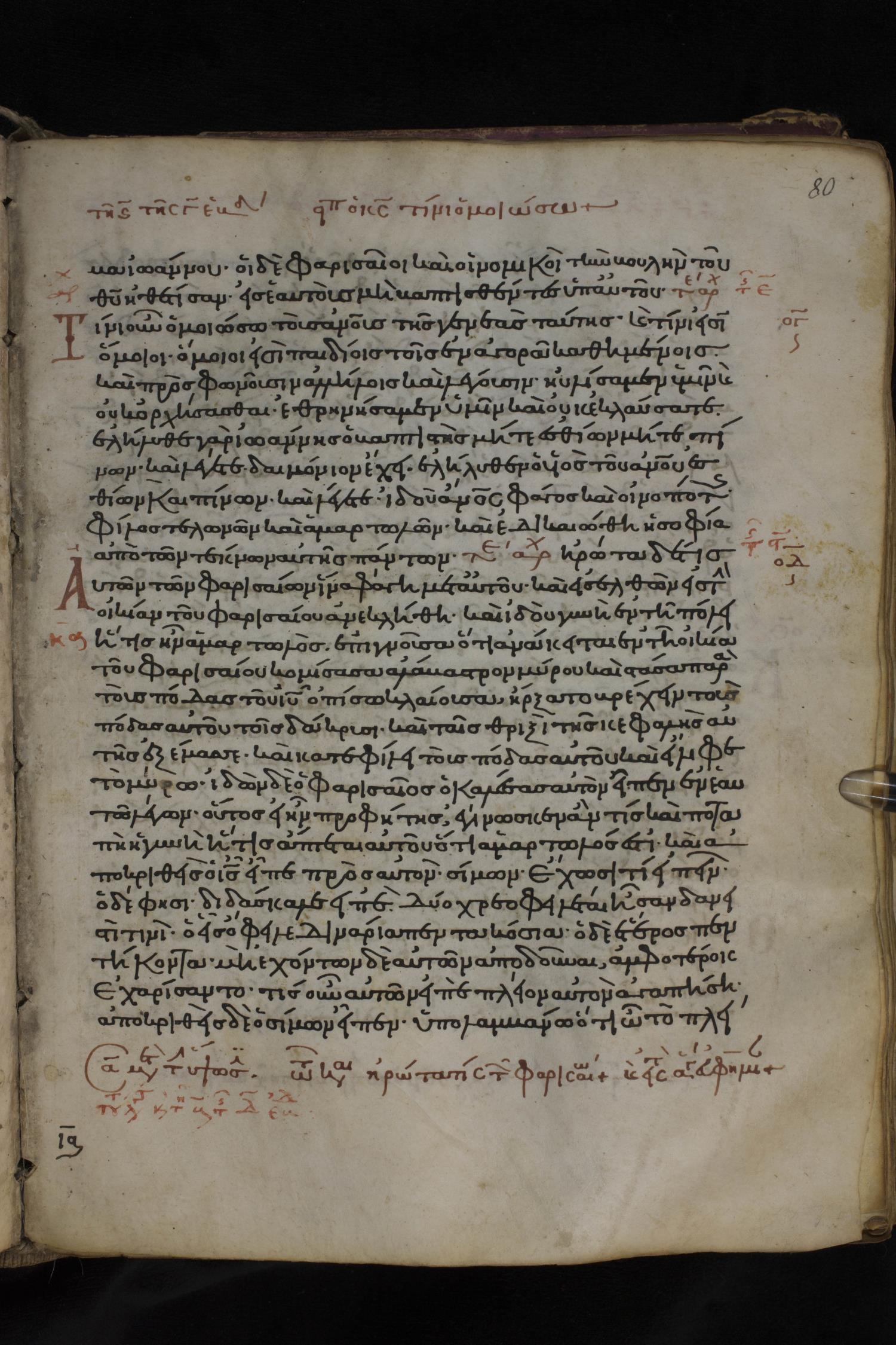 Twelfth century minuscule of the Gospels on parchment; 150 leaves, 1 column, 27 lines per column. Images were taken at the National Library of Greece in Athens.