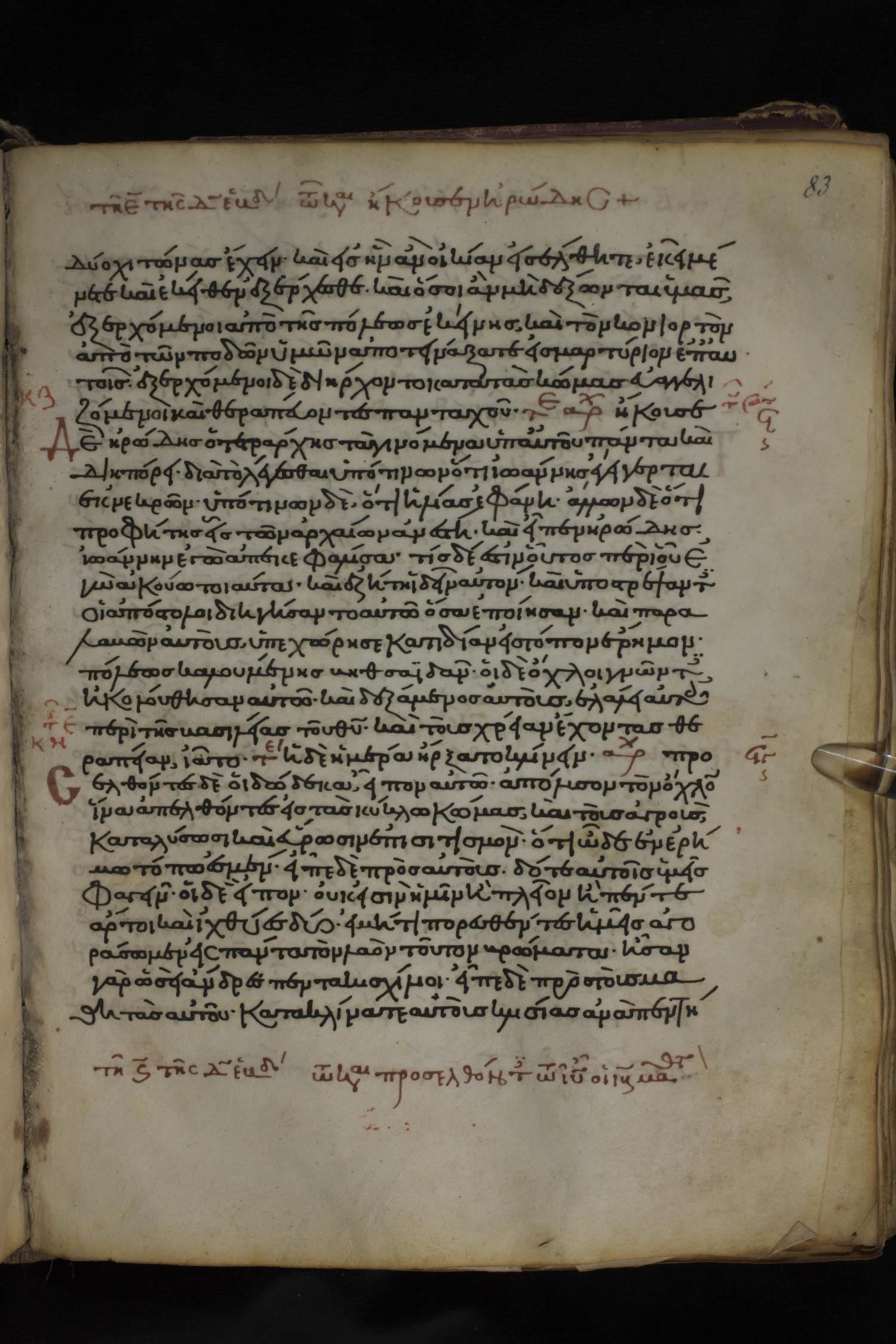 Twelfth century minuscule of the Gospels on parchment; 150 leaves, 1 column, 27 lines per column. Images were taken at the National Library of Greece in Athens.