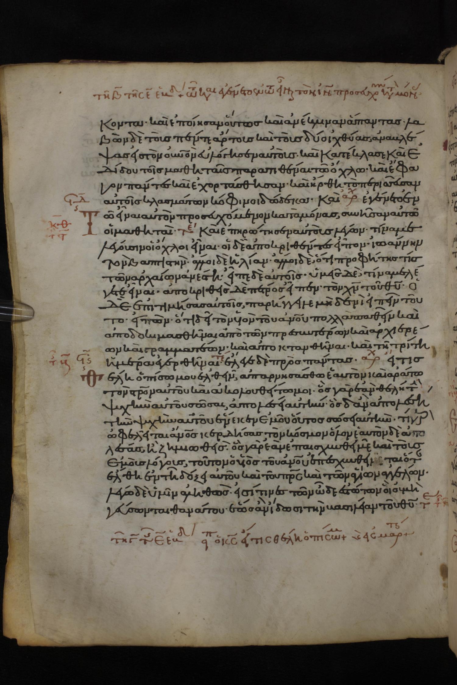 Twelfth century minuscule of the Gospels on parchment; 150 leaves, 1 column, 27 lines per column. Images were taken at the National Library of Greece in Athens.