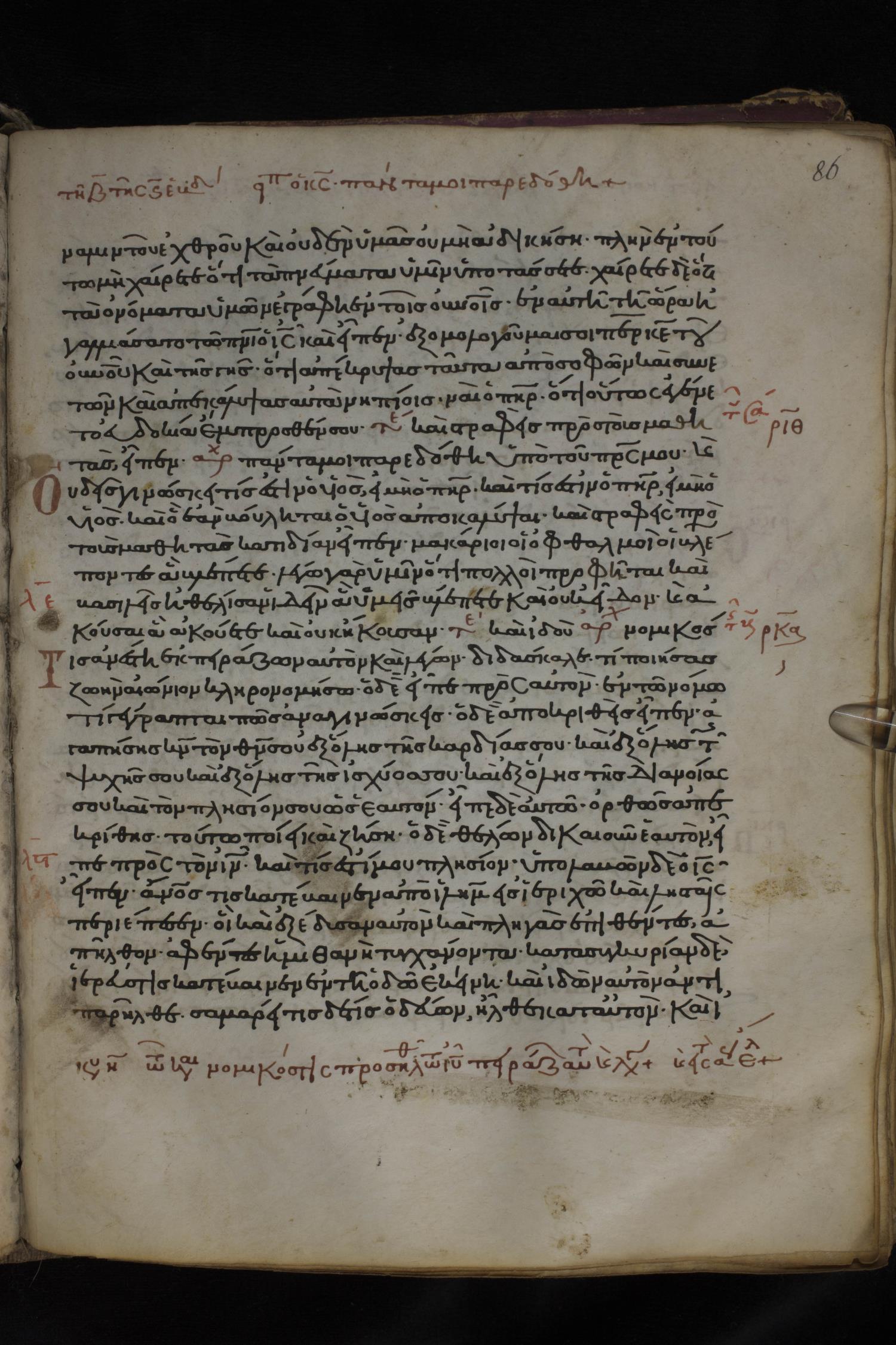 Twelfth century minuscule of the Gospels on parchment; 150 leaves, 1 column, 27 lines per column. Images were taken at the National Library of Greece in Athens.