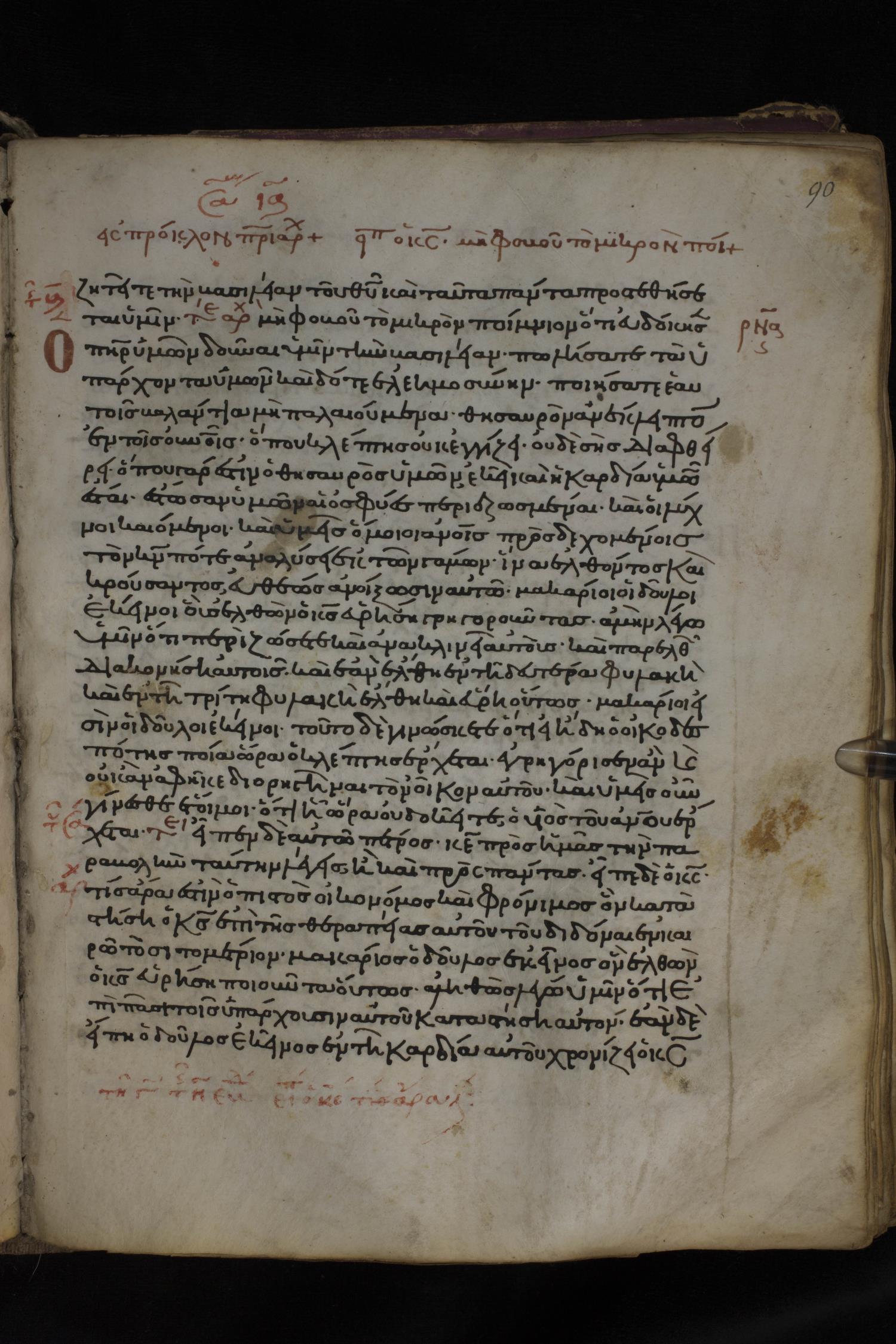 Twelfth century minuscule of the Gospels on parchment; 150 leaves, 1 column, 27 lines per column. Images were taken at the National Library of Greece in Athens.