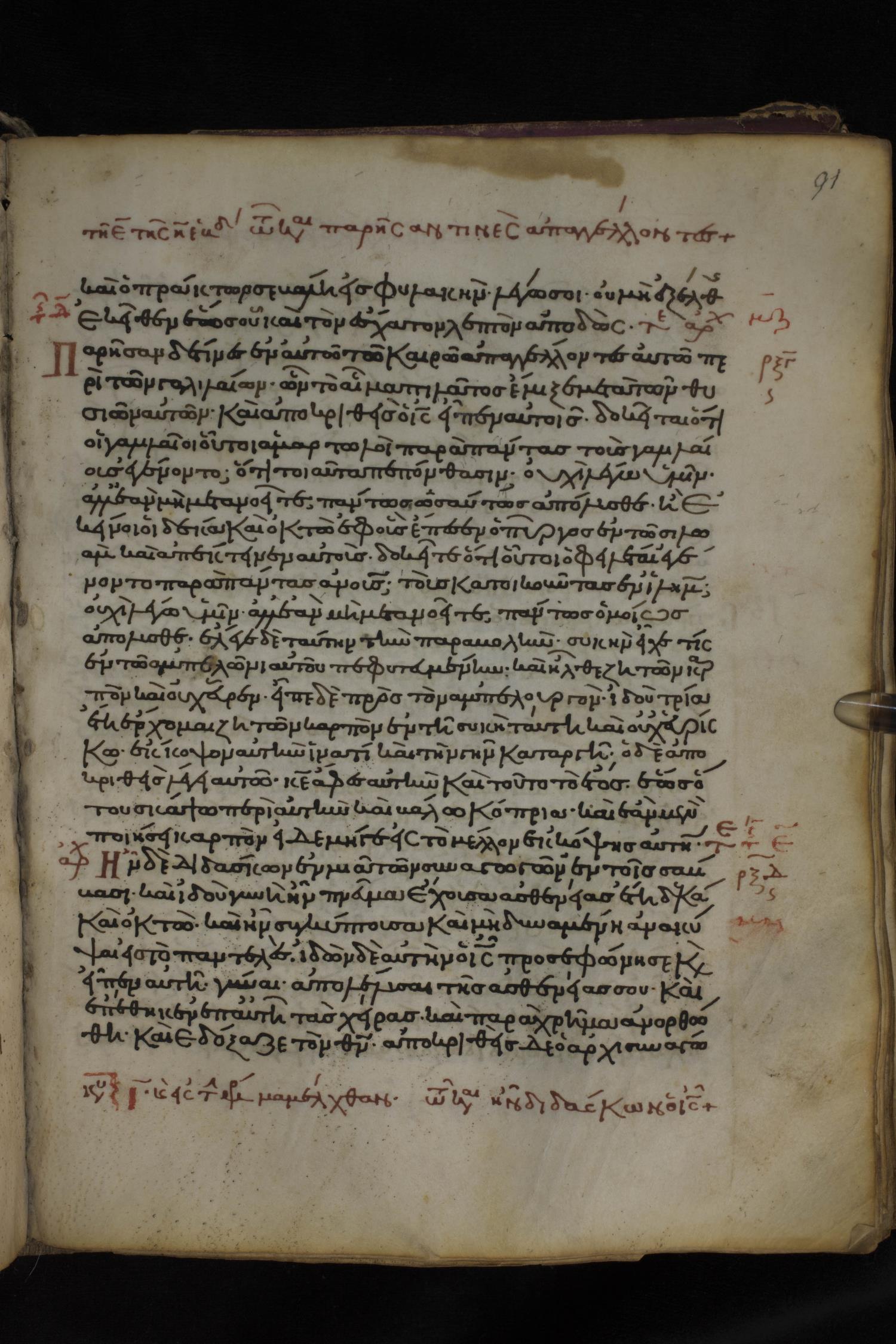 Twelfth century minuscule of the Gospels on parchment; 150 leaves, 1 column, 27 lines per column. Images were taken at the National Library of Greece in Athens.
