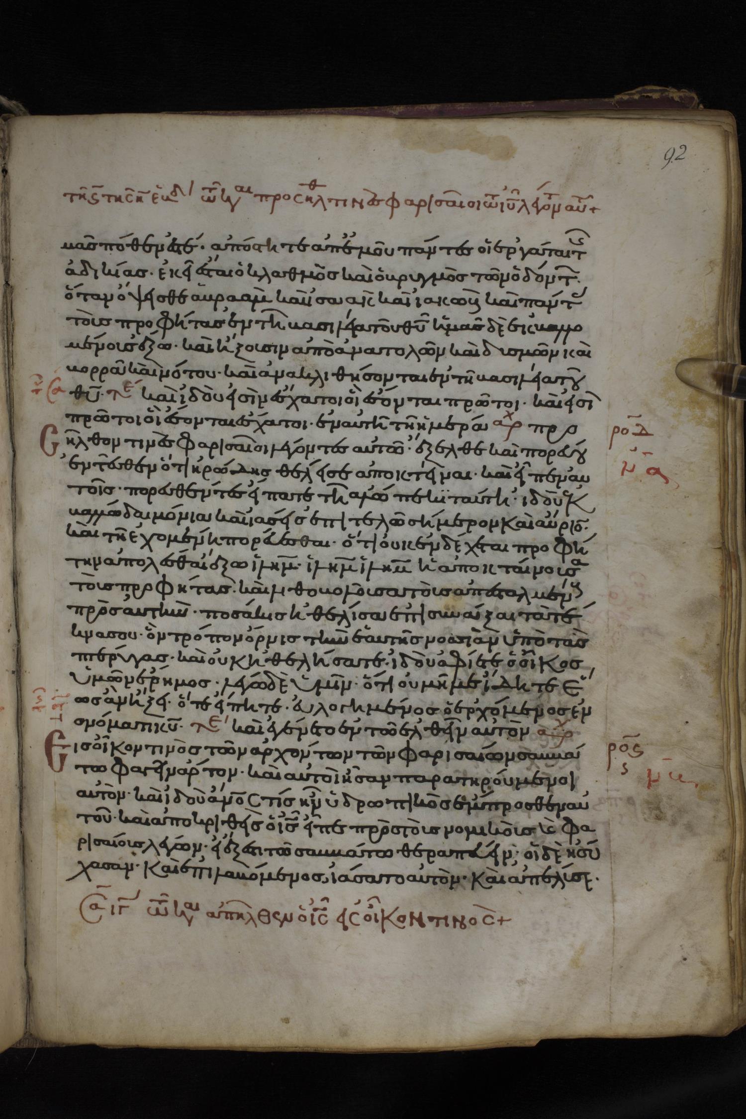 Twelfth century minuscule of the Gospels on parchment; 150 leaves, 1 column, 27 lines per column. Images were taken at the National Library of Greece in Athens.