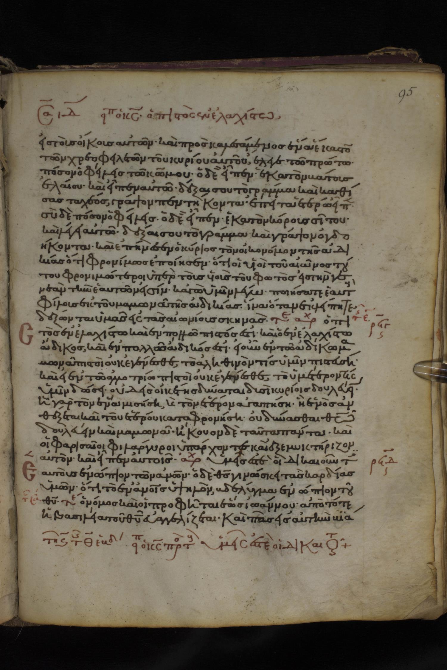Twelfth century minuscule of the Gospels on parchment; 150 leaves, 1 column, 27 lines per column. Images were taken at the National Library of Greece in Athens.