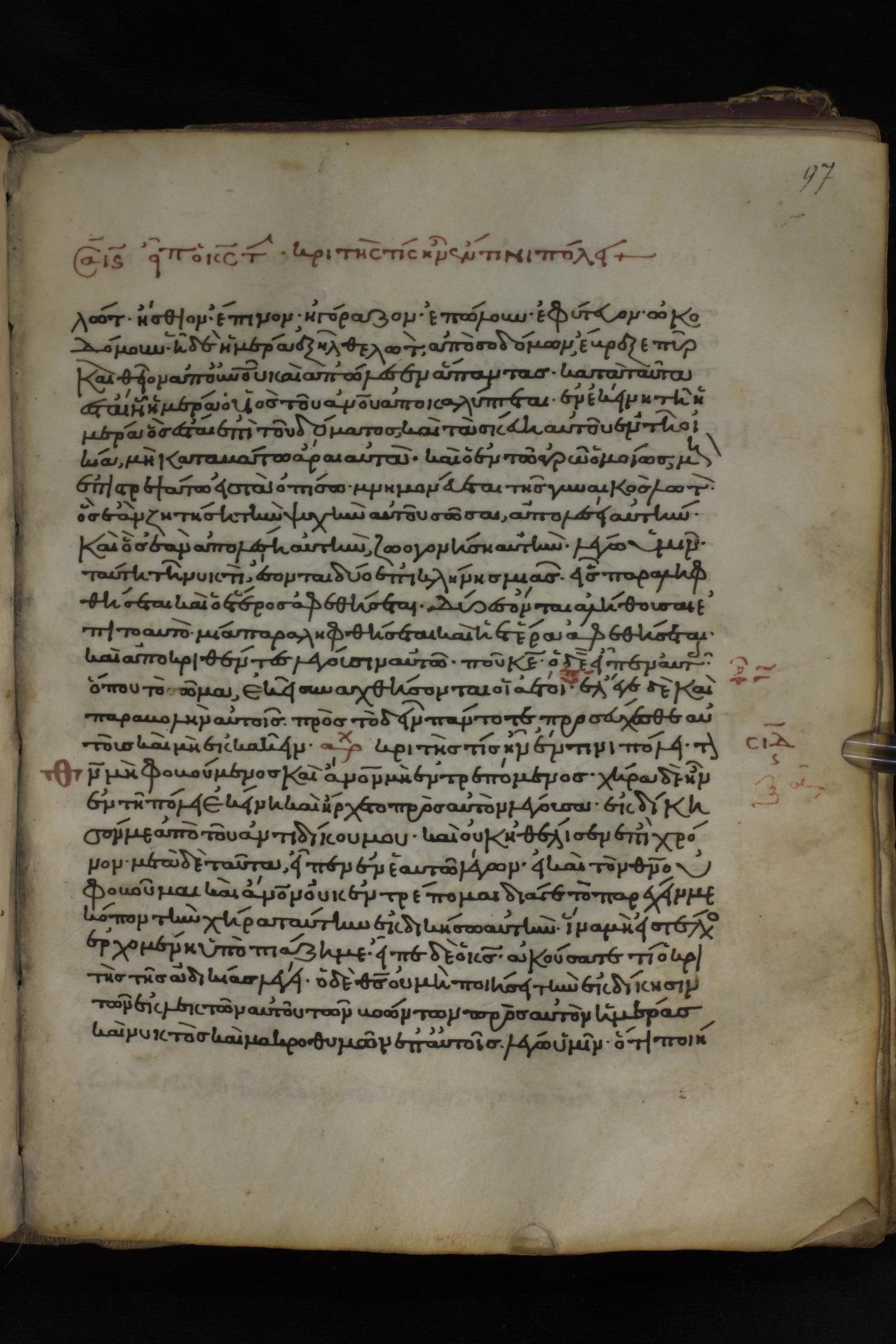 Twelfth century minuscule of the Gospels on parchment; 150 leaves, 1 column, 27 lines per column. Images were taken at the National Library of Greece in Athens.