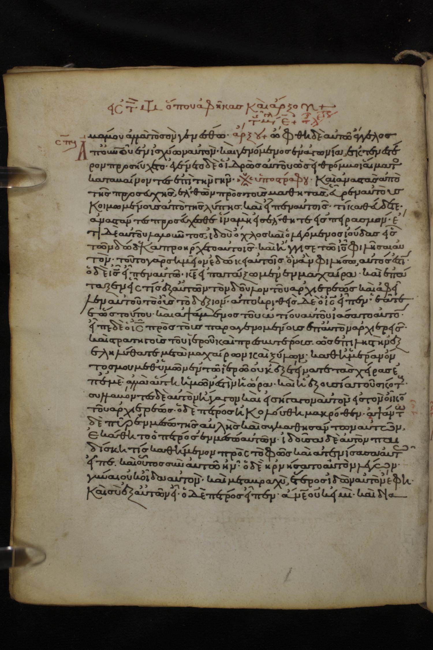 Twelfth century minuscule of the Gospels on parchment; 150 leaves, 1 column, 27 lines per column. Images were taken at the National Library of Greece in Athens.