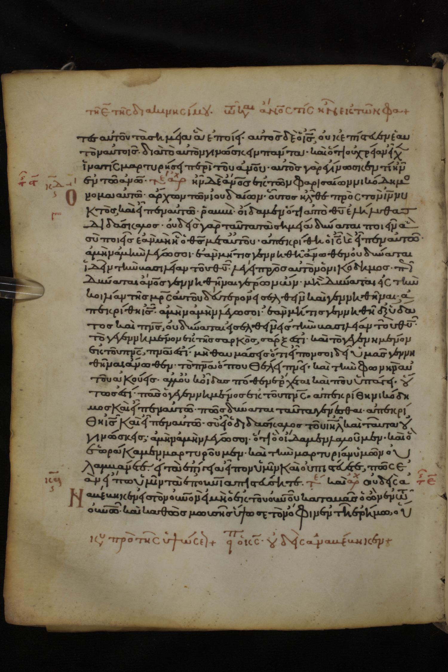 Twelfth century minuscule of the Gospels on parchment; 150 leaves, 1 column, 27 lines per column. Images were taken at the National Library of Greece in Athens.