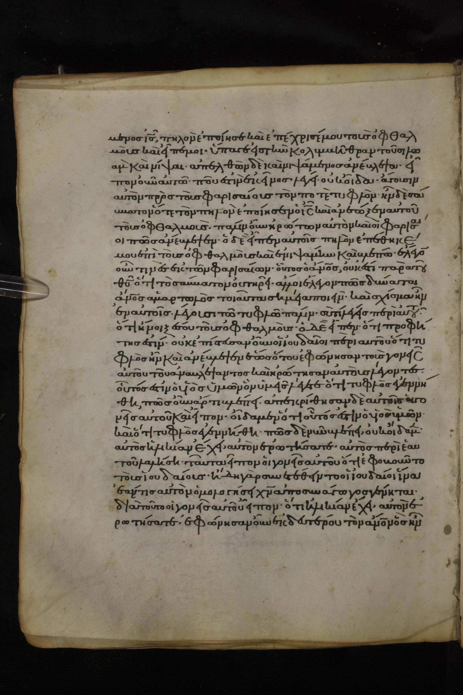 Twelfth century minuscule of the Gospels on parchment; 150 leaves, 1 column, 27 lines per column. Images were taken at the National Library of Greece in Athens.