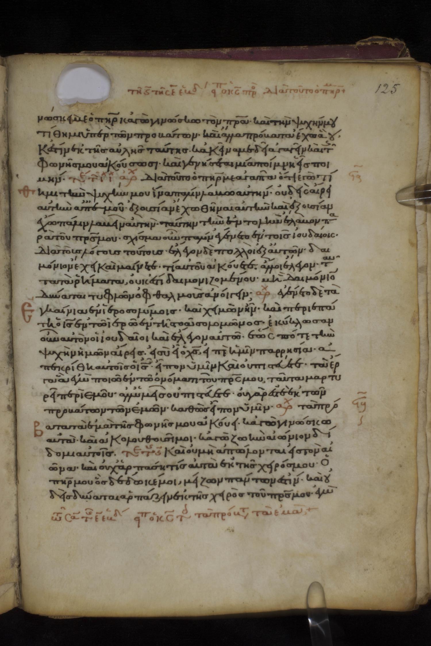 Twelfth century minuscule of the Gospels on parchment; 150 leaves, 1 column, 27 lines per column. Images were taken at the National Library of Greece in Athens.