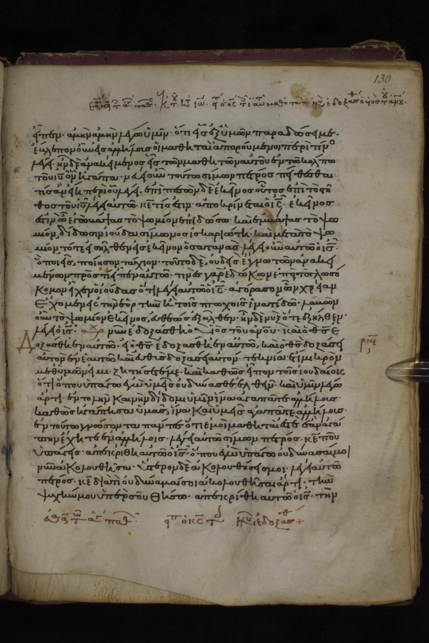 Twelfth century minuscule of the Gospels on parchment; 150 leaves, 1 column, 27 lines per column. Images were taken at the National Library of Greece in Athens.