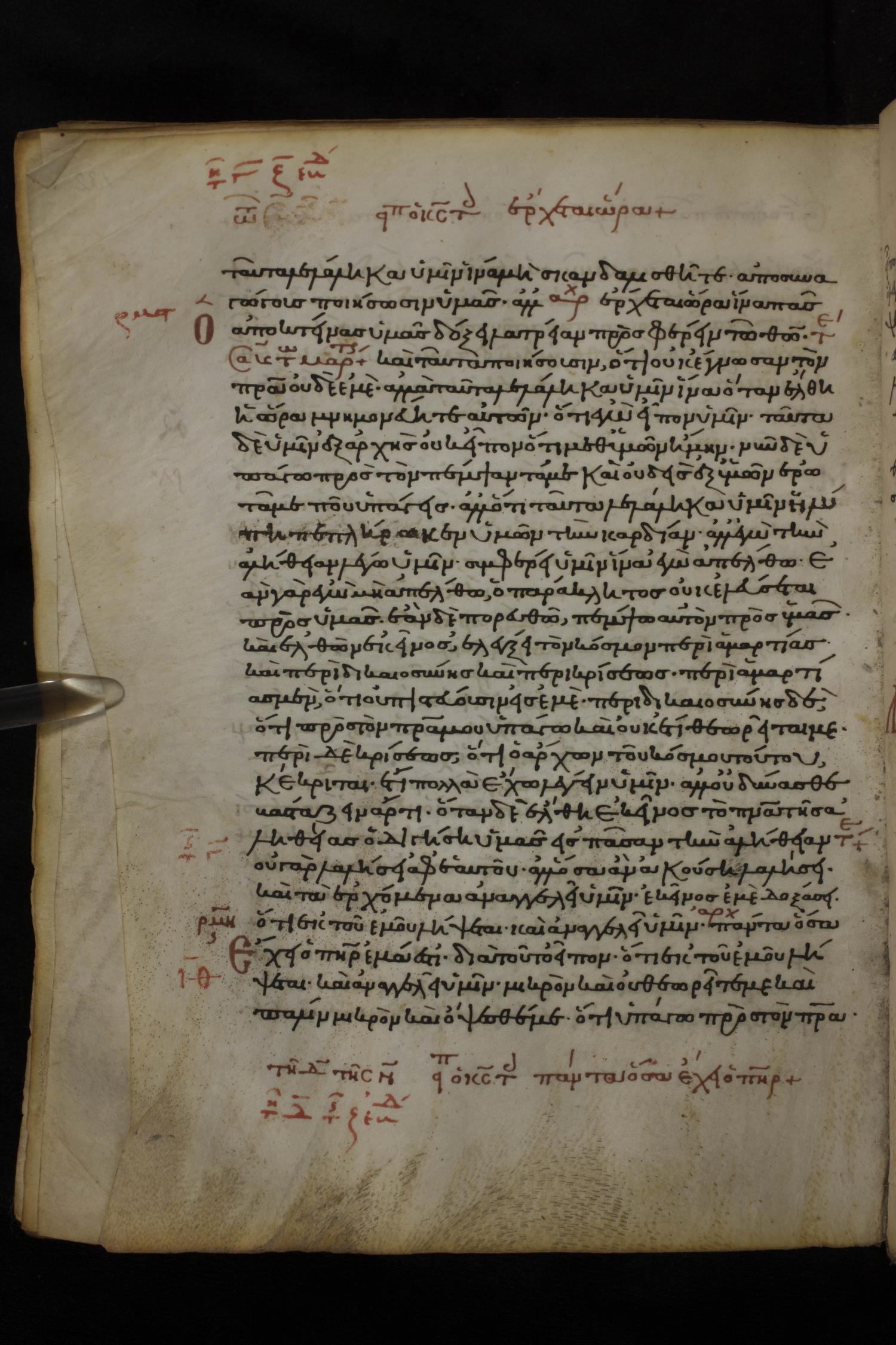 Twelfth century minuscule of the Gospels on parchment; 150 leaves, 1 column, 27 lines per column. Images were taken at the National Library of Greece in Athens.